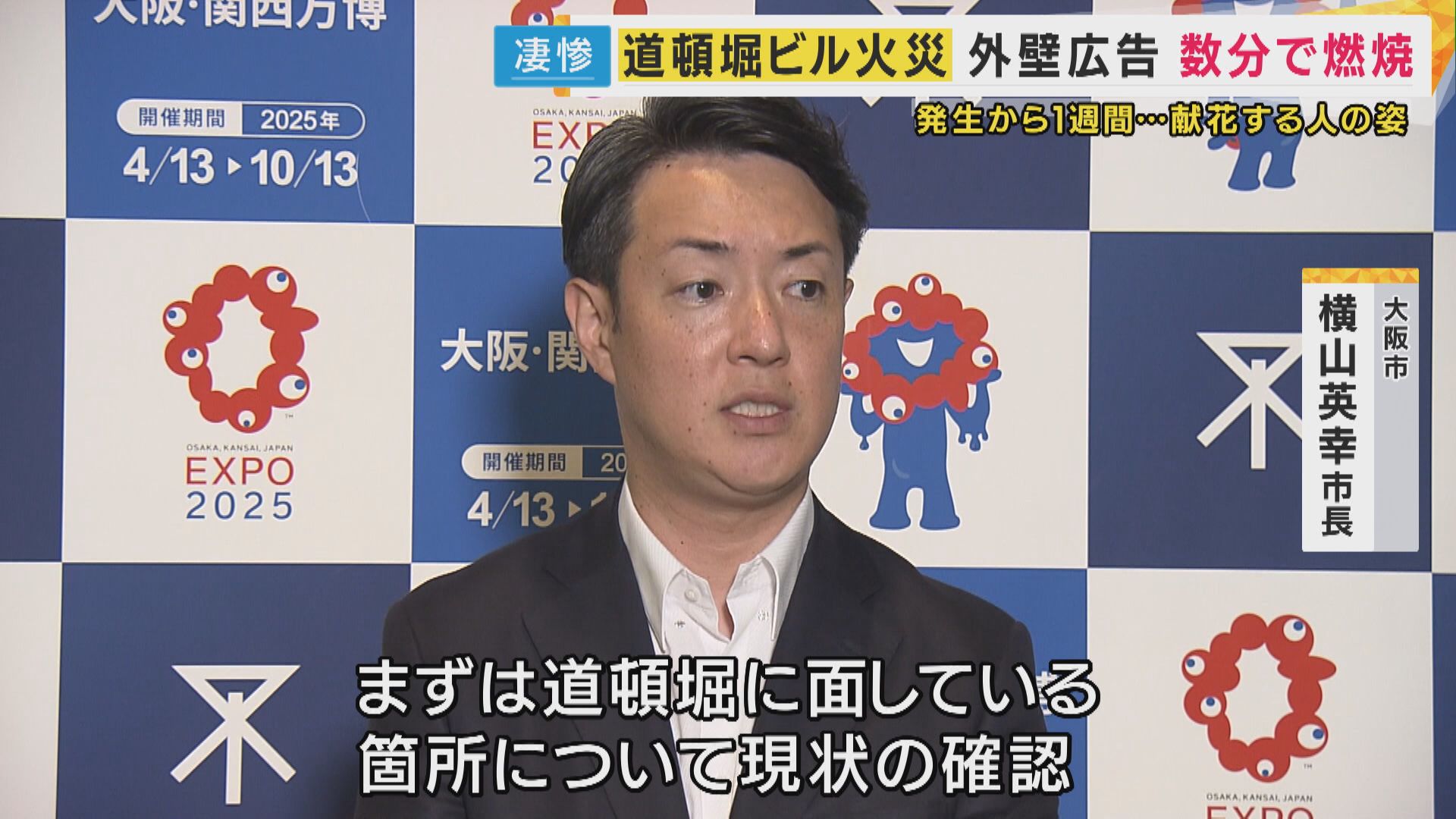 今回の火災を受け横山市長は25日、道頓堀川沿いの看板について調査を進めると明らかにしました。