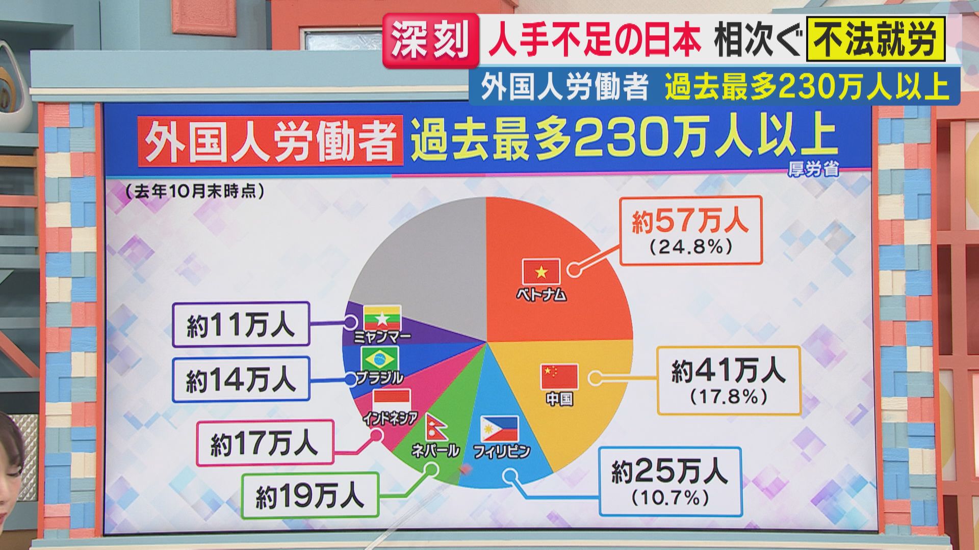 厚労省によると去年、日本で働く外国人労働者は、過去最多の230万人以上に。