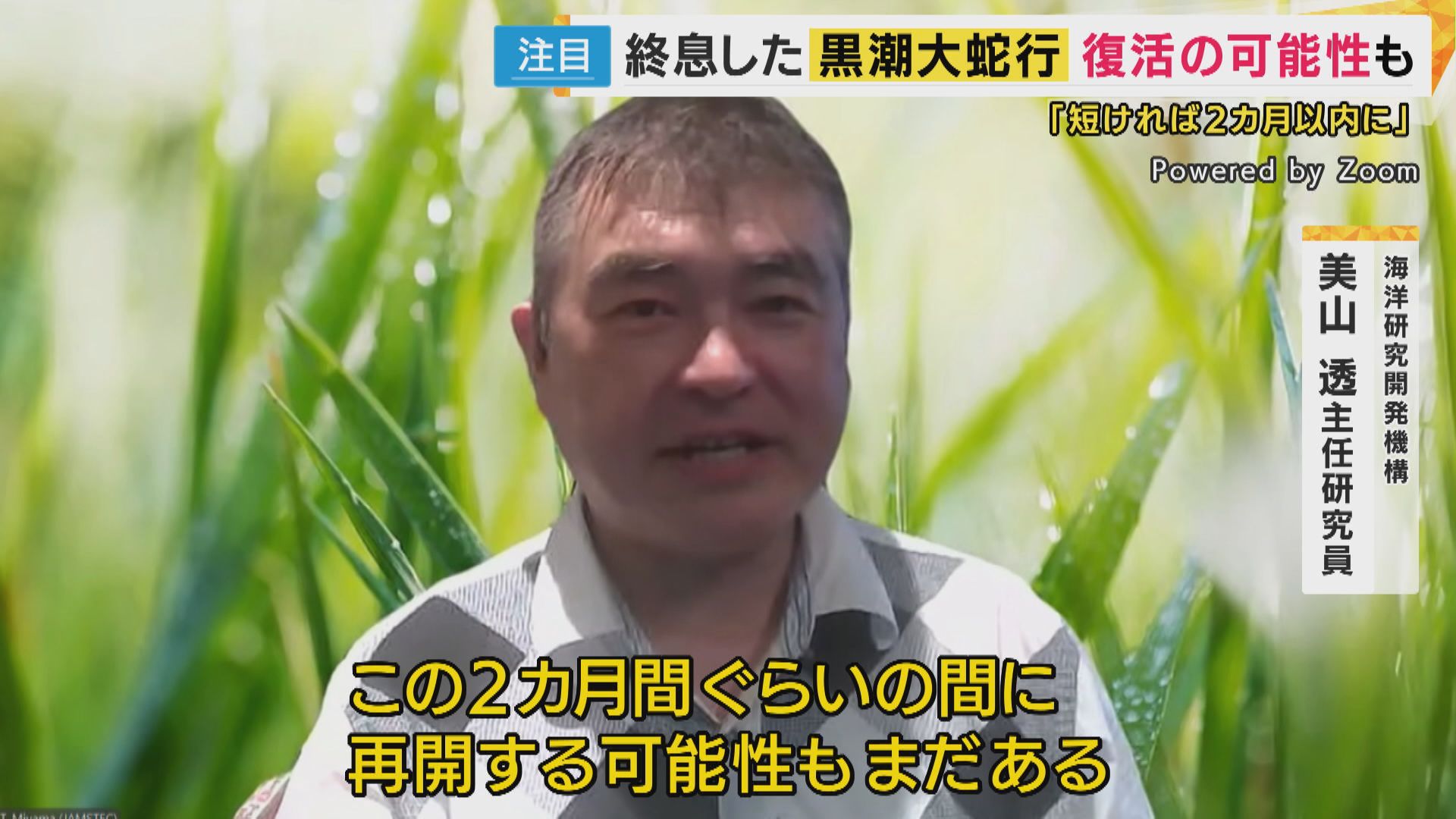 【海洋研究開発機構 美山透主任研究員】「(大蛇行を引き起こす)渦がまだそこら辺にいるので、これをきっかけに黒潮大蛇行が再開する可能性というのはあってこの2カ月間ぐらいの間に再開する可能性もまだある」