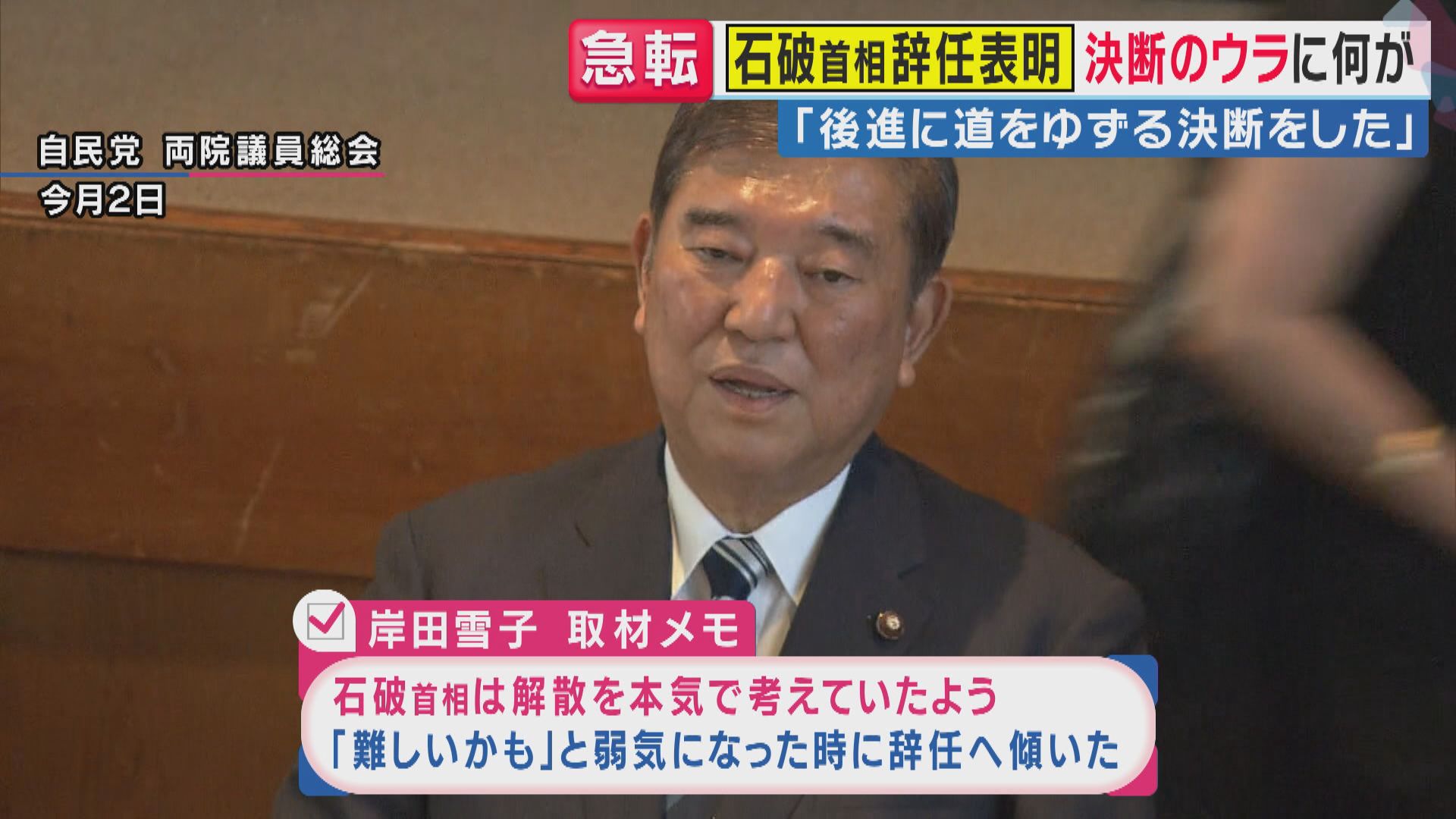 “石破おろし”が吹き荒れる中、首相が「“伝家の宝刀”を抜くのか」ということも注目されましたが、会見では、「色々な考え方があったことは否定しない。何よりも国民に対して、政府の機能が停滞するということがあっては、決してならないということで、この判断(退陣)に至った」と述べました。