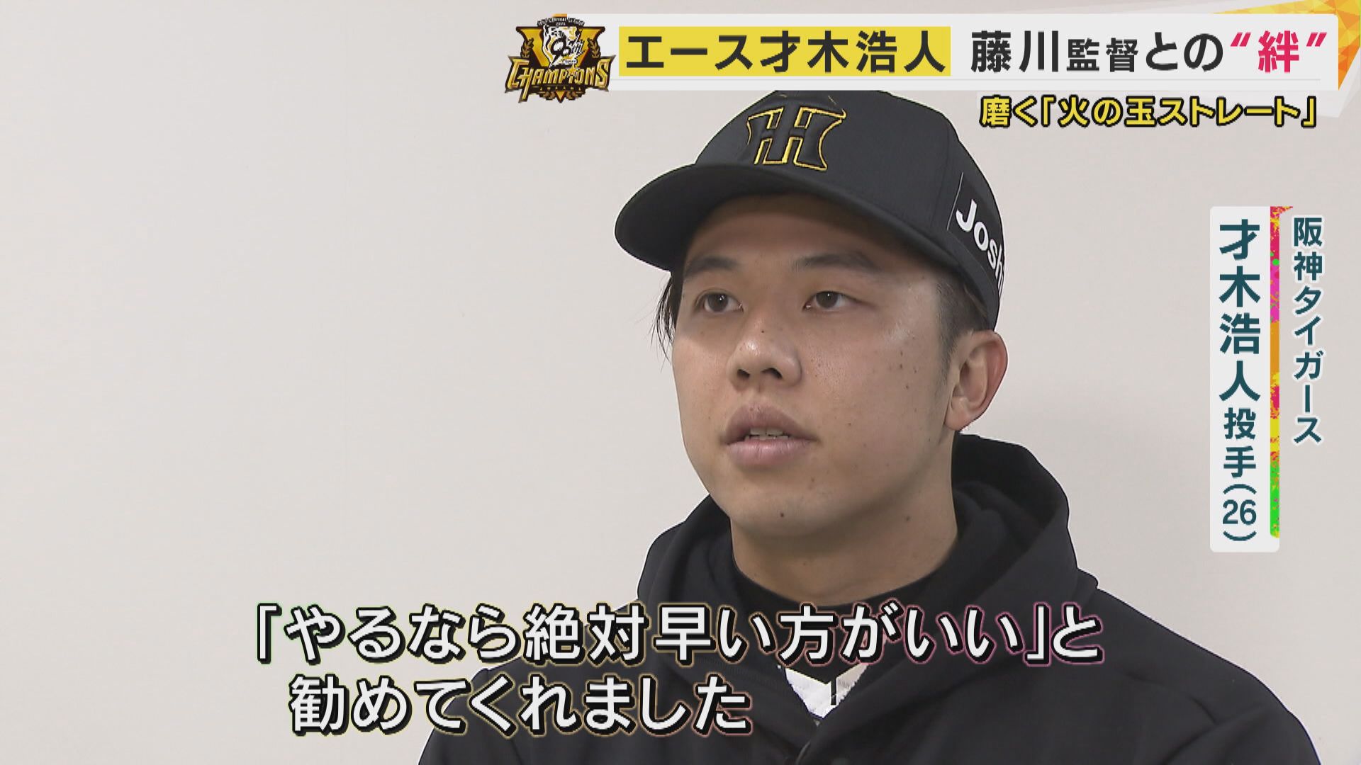 5年前、右ひじの故障で悩んでいた才木投手が手術に踏み切ったのは、自身も同じ手術を経験して復帰した、藤川球児監督のアドバイスがあってのことでした。