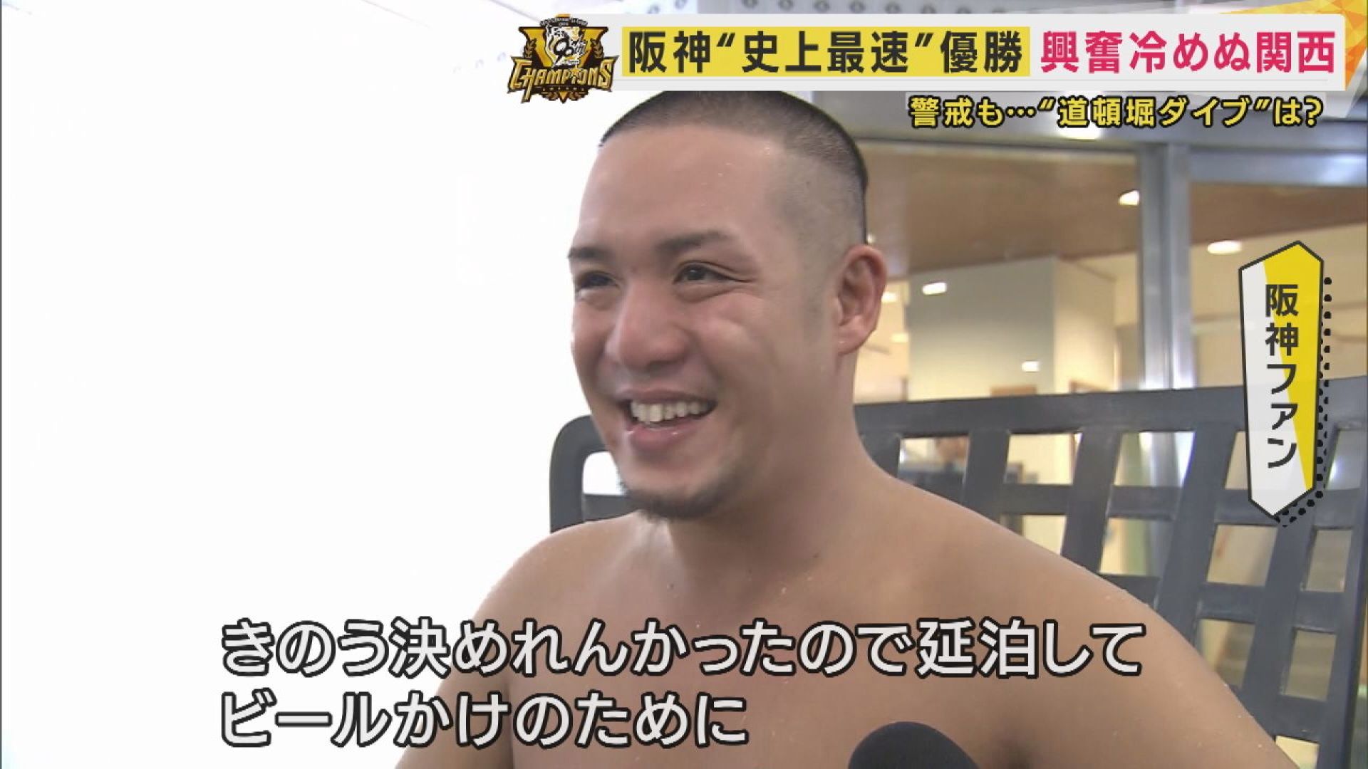 【神戸サウナ&スパの阪神ファン】「きのう決めれんかったので、延泊してビールかけのために」