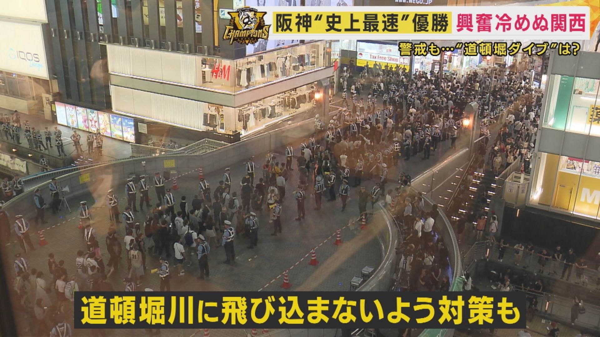 【記者リポート】「戎橋の上では、多くの警察官が左側通行を呼び掛け、今の所目立った混乱はありません」