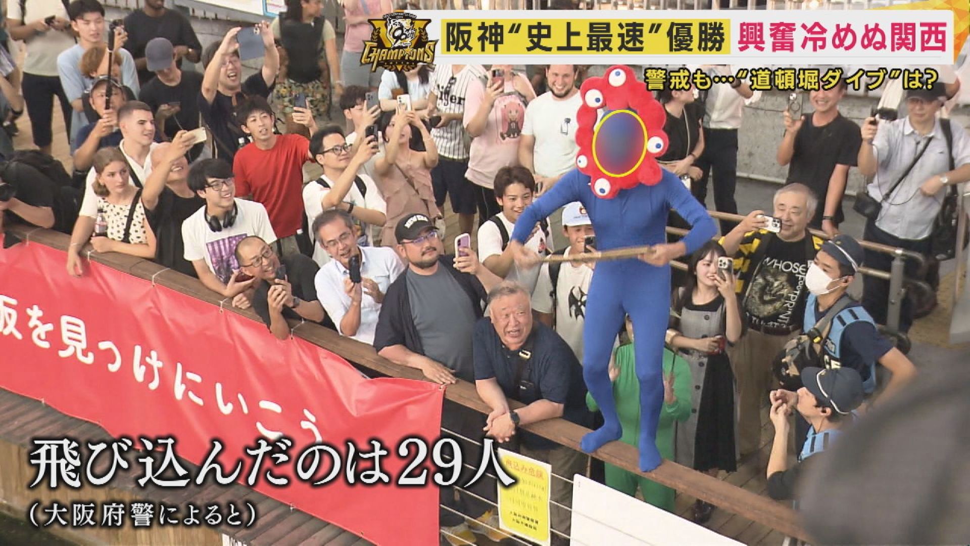 道頓堀川に飛び込む人の姿が…。大阪府警によると、29人が飛び込んだということです。