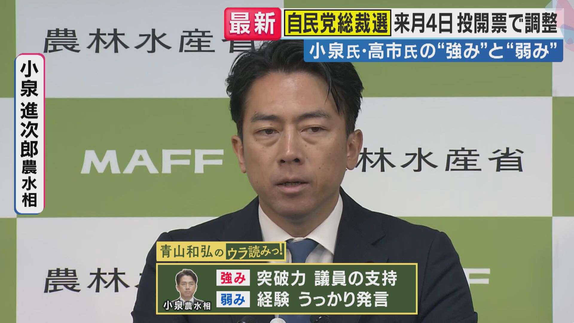 【青山和弘さん】「弱みは、小泉さんは経験不足が、前の総裁選でも明らかになった。