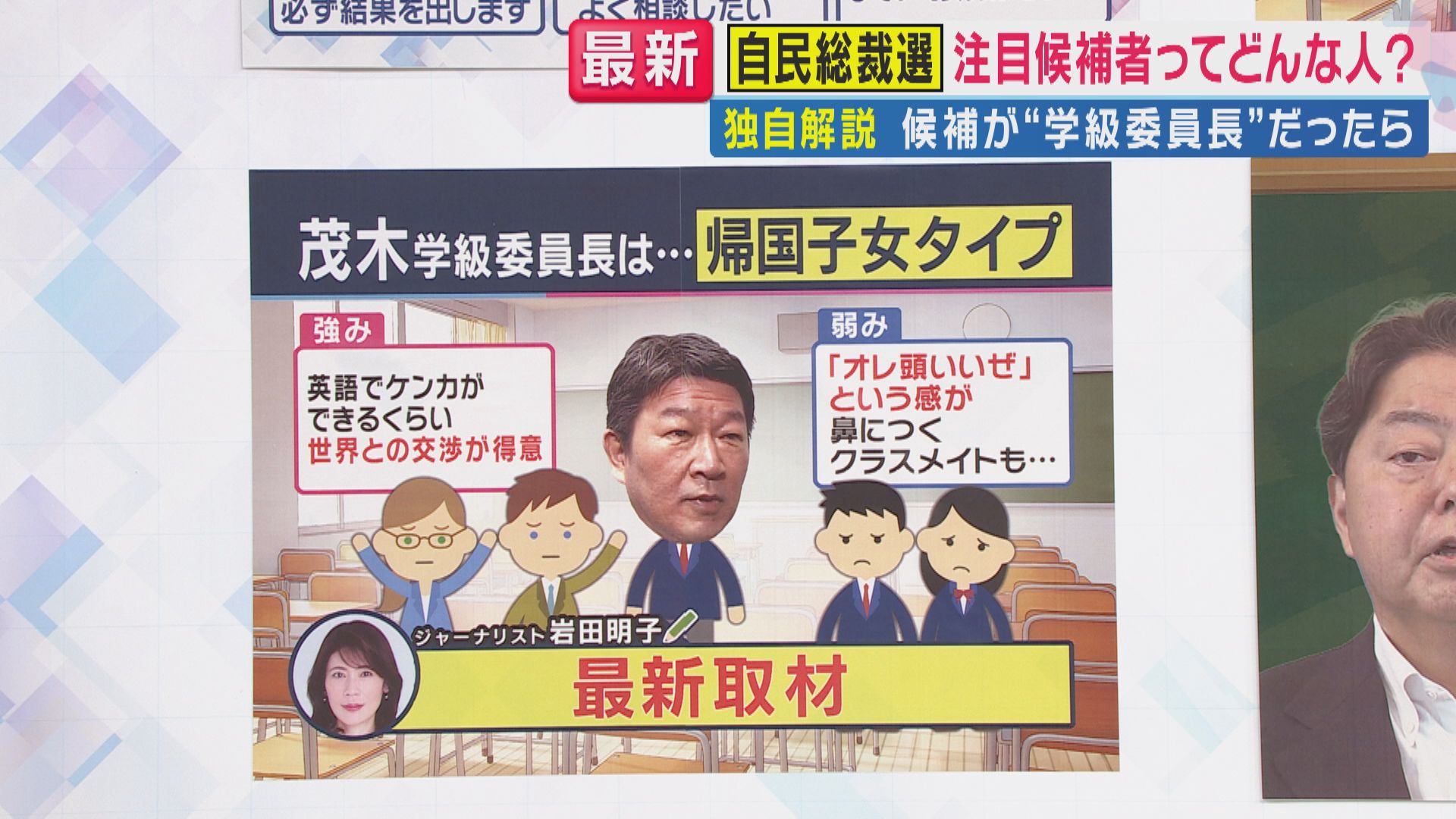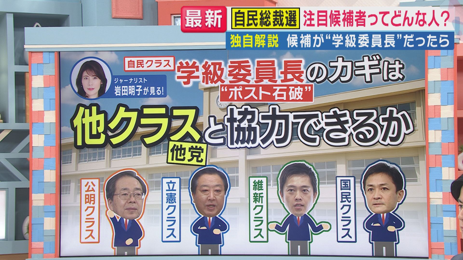 岩田さんが語る学級委員長(“ポスト石破”=首相)のカギは、「ほかのクラス(他党)と協力できるか」だと言います。
