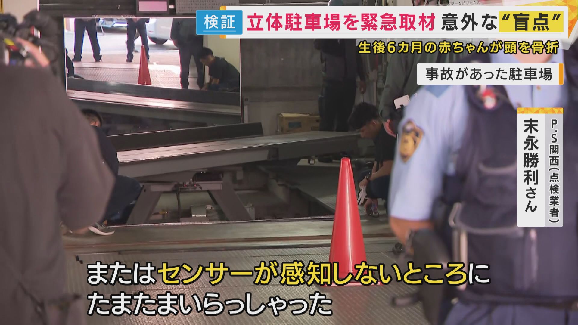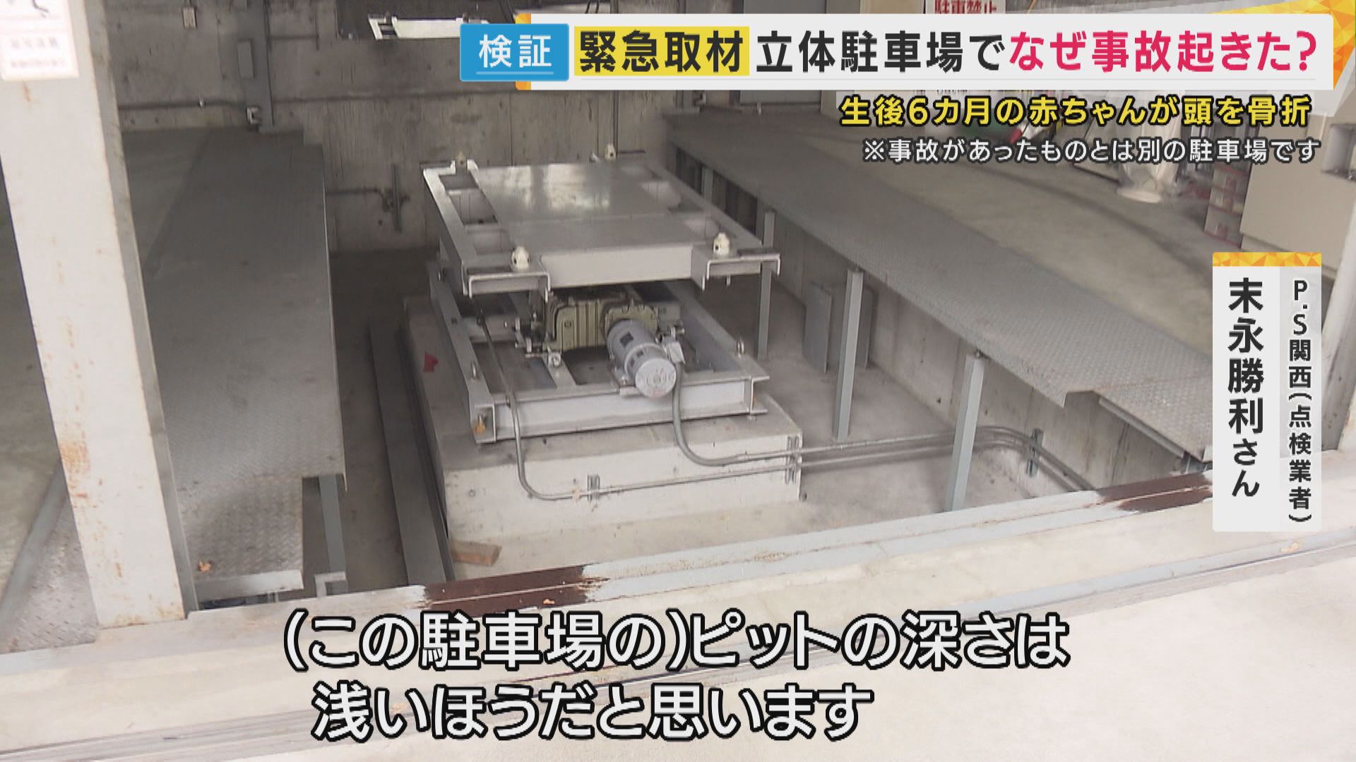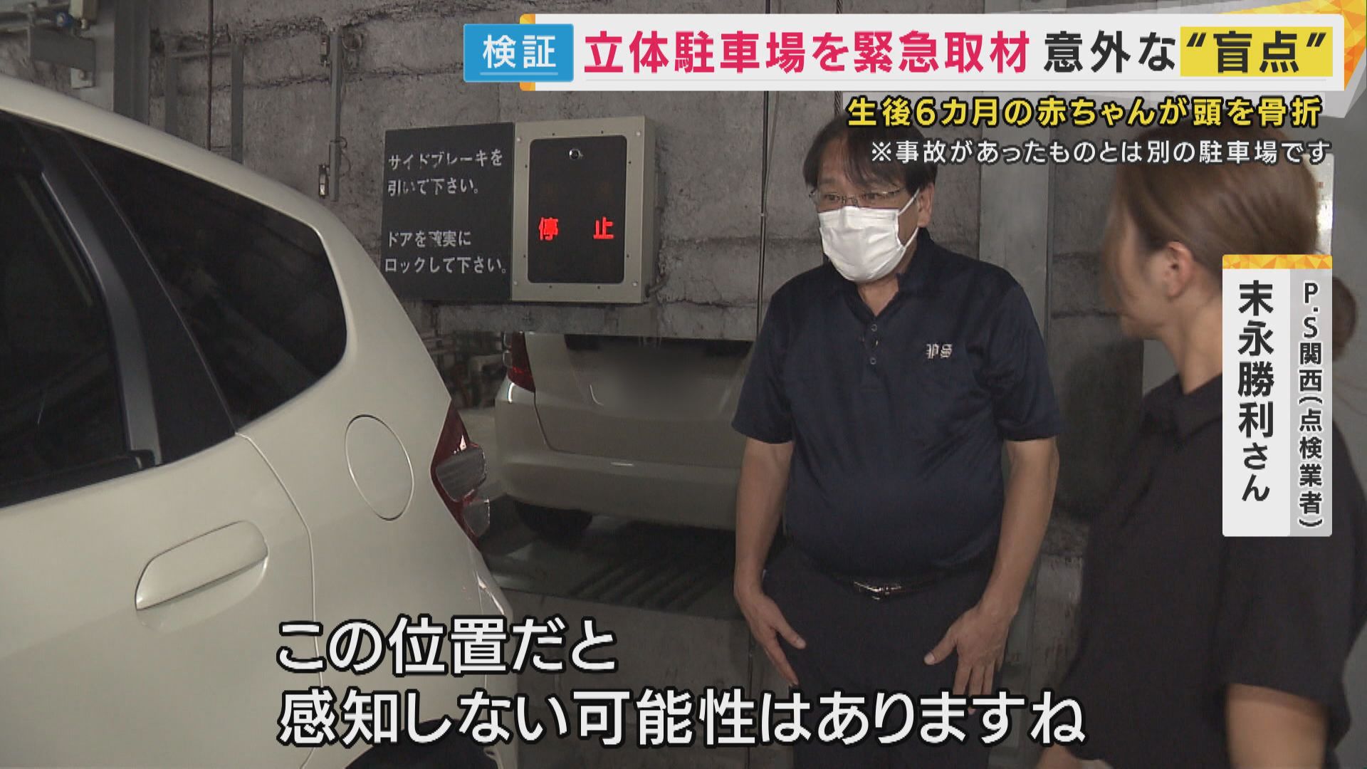 【P.S関西 末永勝利さん】「機械式駐車場の中には、運転手だけが入るのが原則。特に子供はこういった隙間とかに落ちる可能性があるので、絶対に(車庫内に)入ってはいけません」