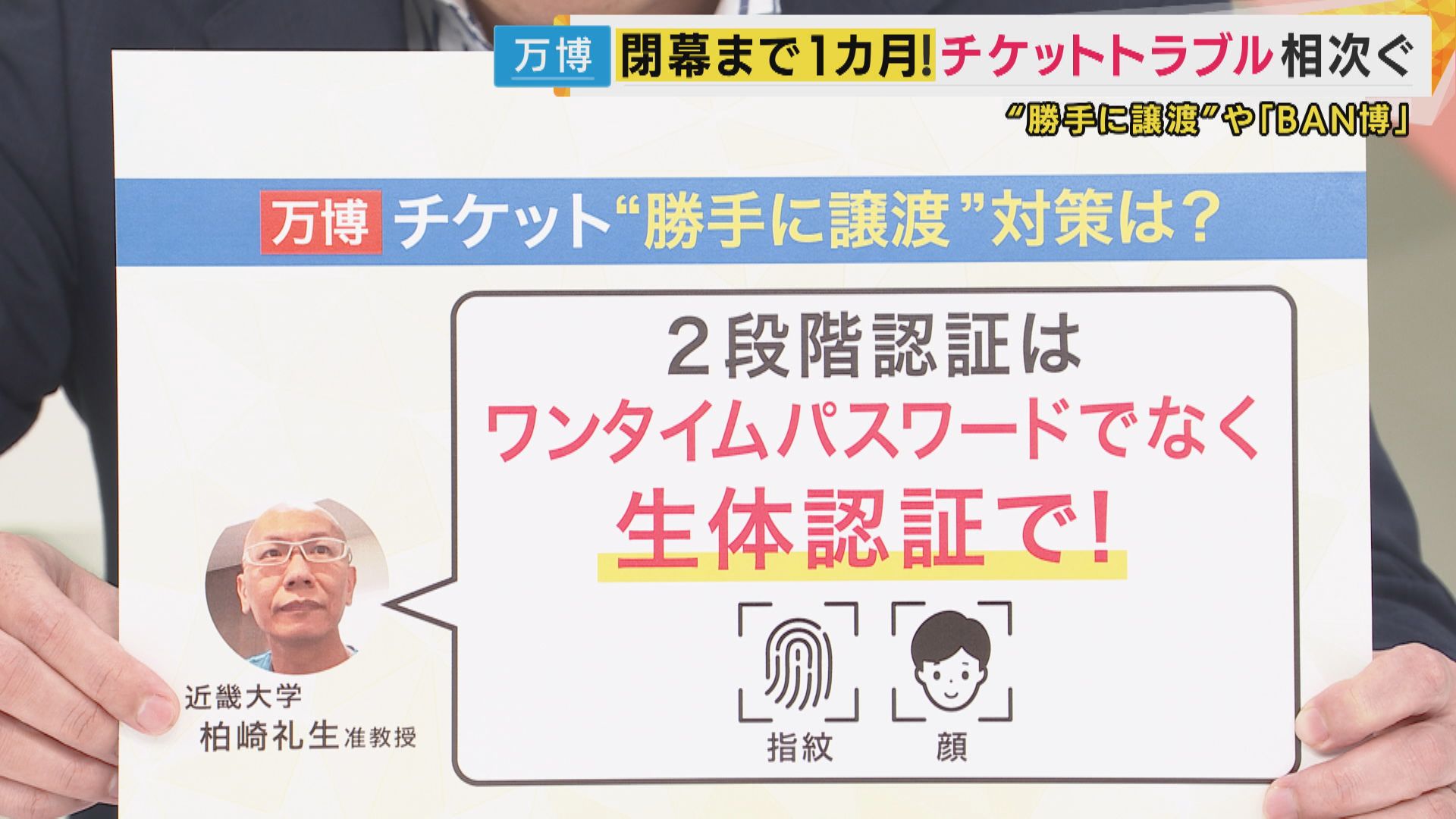 チケットが“勝手に譲渡”されてしまった被害については、不正アクセスが疑われますが、情報セキュリティに詳しい近畿大学の柏崎礼生准教授によると、他人による不正アクセスを防ぐための2段階認証は、メールやショートメッセージなどのワンタイムパスワードではなく、よりセキュリティが高い顔認証や指紋認証などの生体認証にすることが大切だそうです。