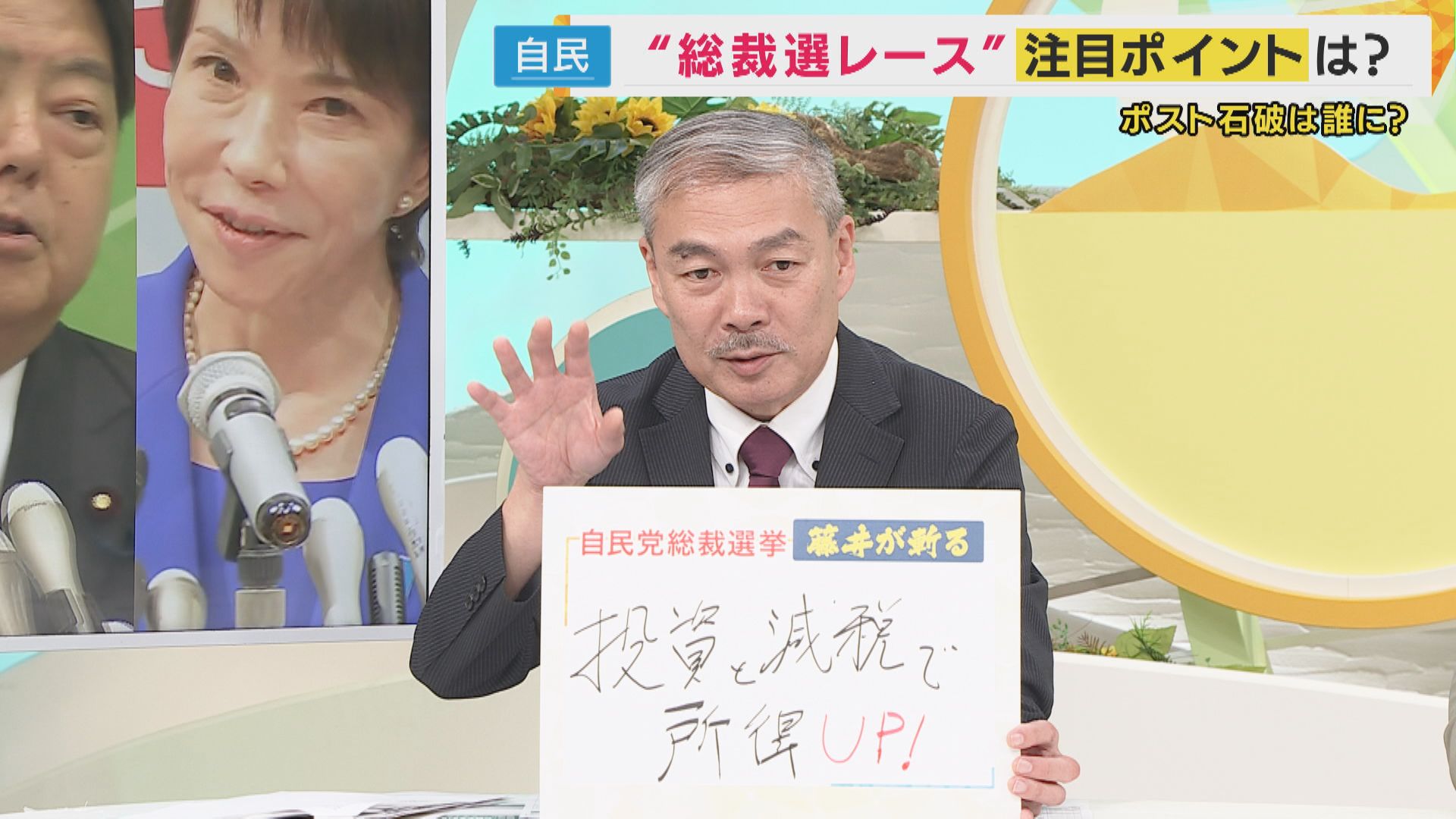 京都大学大学院の藤井聡教授は、高市氏が会見で語った政策について「投資と減税で所得UP!」と題し、「投資と減税をやることで、経済の好循環を実現し所得アップを実現するということで、他候補と大きく違う点だ」と述べました。