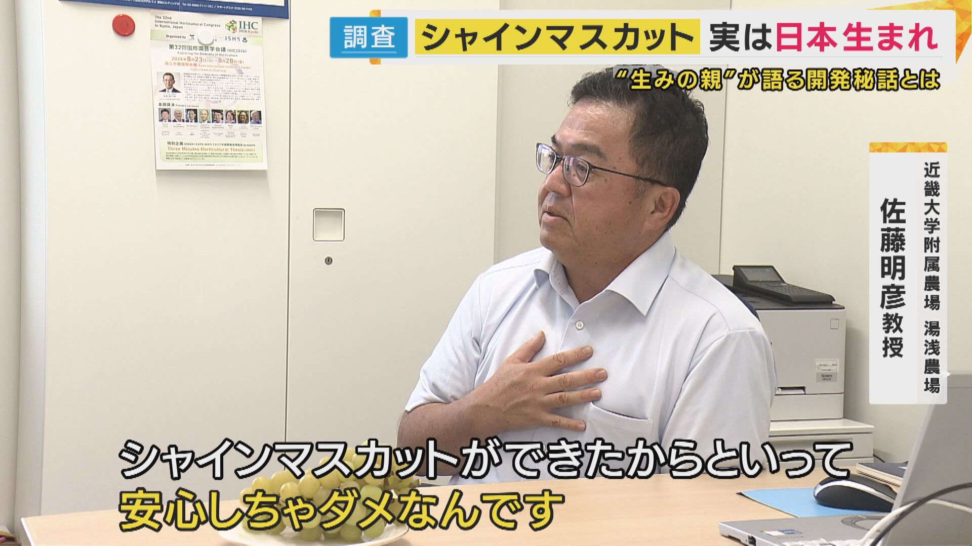 【近畿大学附属農場・佐藤明彦教授】「いろんな品種があって、それが食べたい人が食べたい時に食べたいものを食べるというのが豊かさになりますから、シャインマスカットができたからといって、安心しちゃダメなんです。次のものを作っていかなきゃいけないですね」
