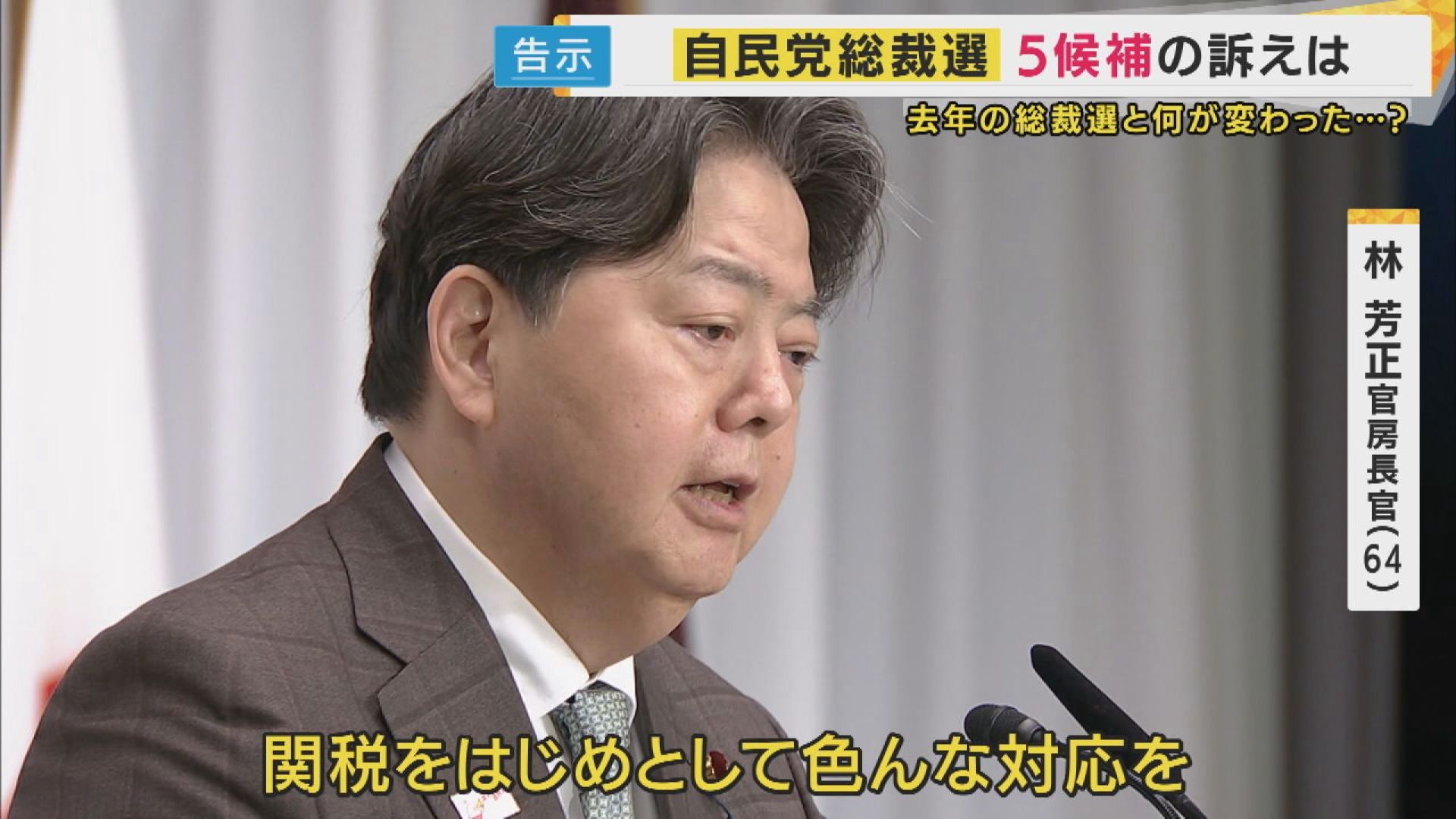 23日午前、自民党総裁選の5人の候補者は共同会見に臨みました。去年行われた総裁選にも出馬していた5人。