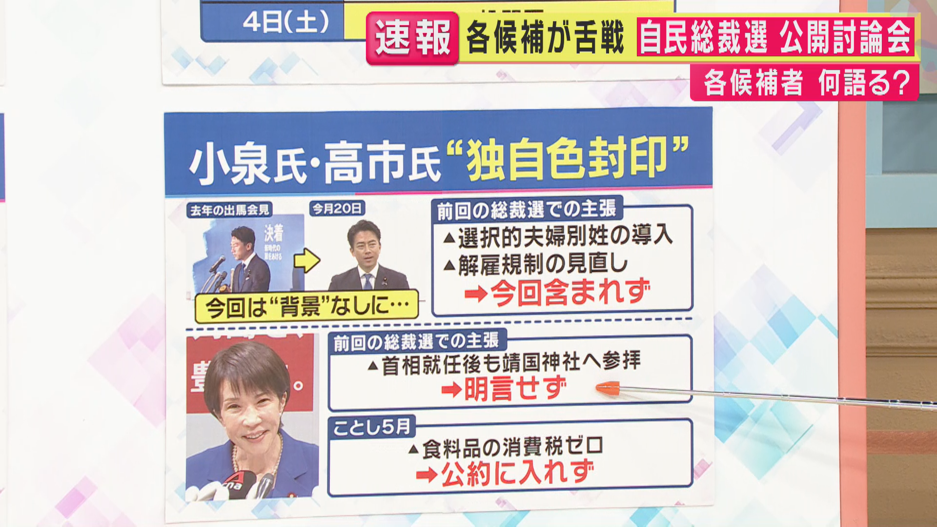 【青木源太キャスター】「あまり差異がないんじゃないかと言われてる中で、10月4日の投開票までに、その辺りも踏み込んでくる候補者が出てくる可能性もありますか?」