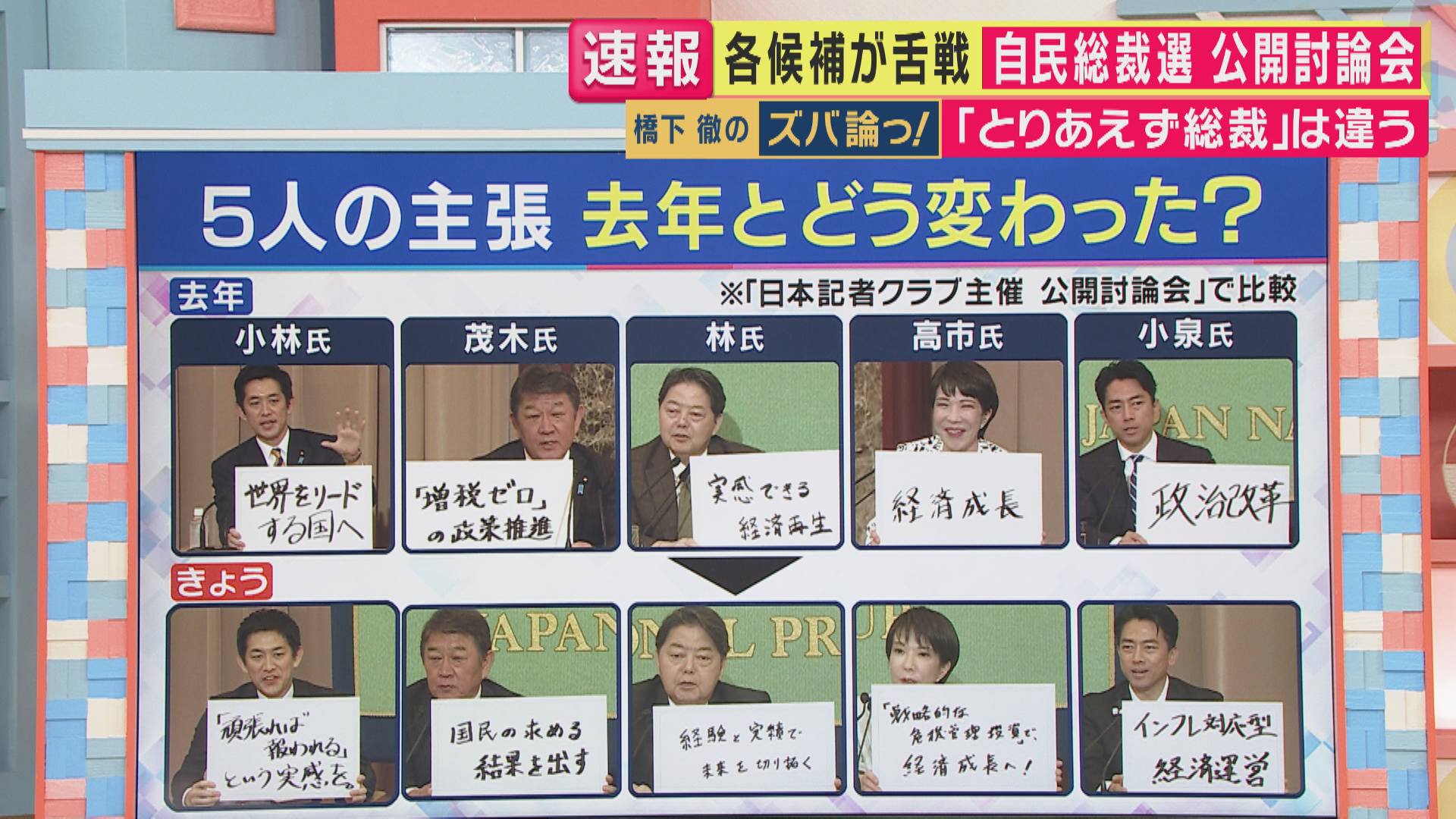 【橋下徹氏】「(総裁選立候補者の)5名の方の政治家の姿勢は、これからの日本社会は何かやろうと思えば絶対反対の声が出てきますけども、そういうことをやらないんだろうなと。