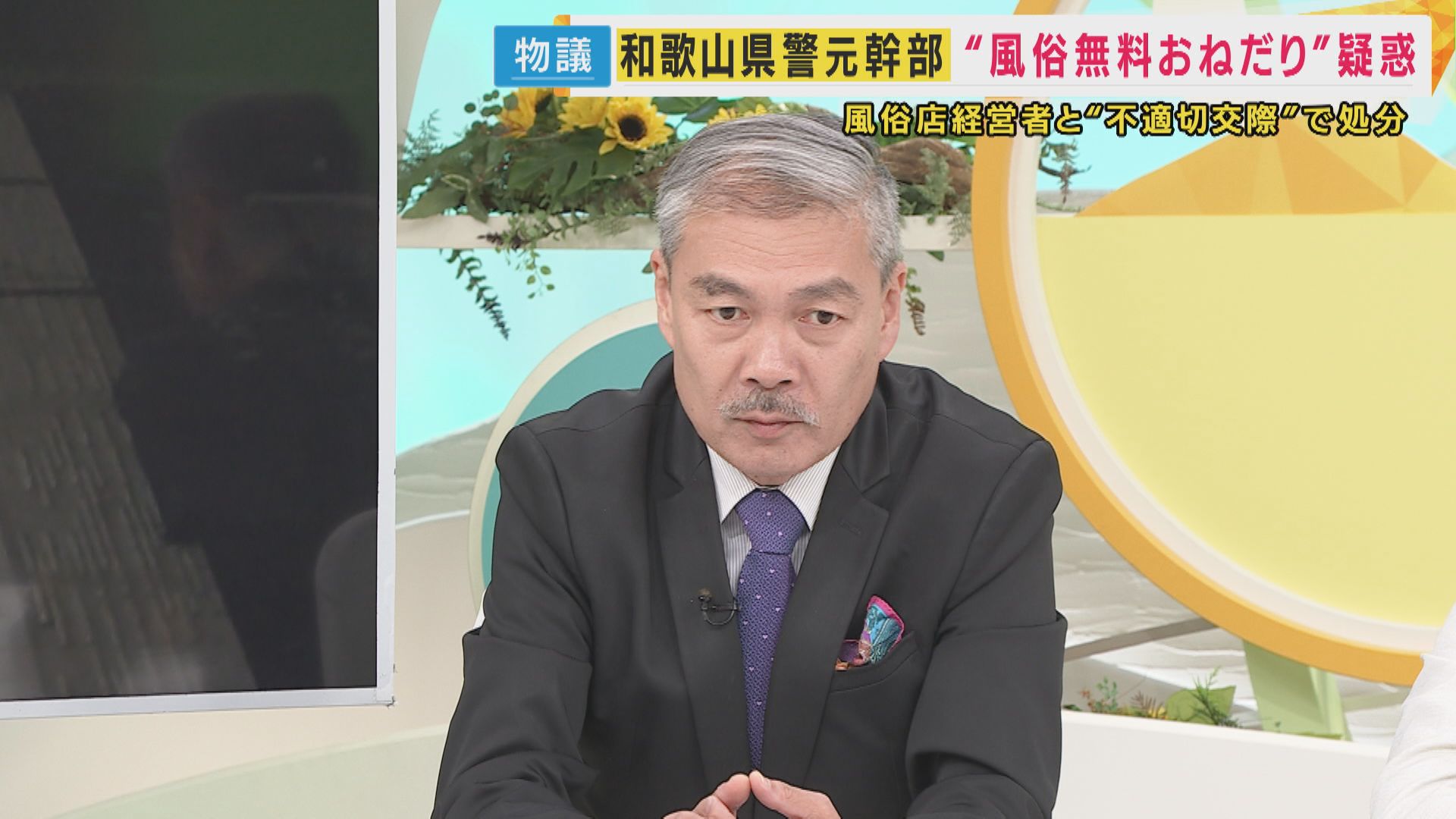 この疑惑について、元兵庫県警刑事部長の棚瀬誠さんは、「和歌山県警も徹底調査したはずだが、無料で性的サービスを受けていたとまでは裏付けられず、本部長訓戒になったのだろう。しかし、処分が甘いといった指摘があることも重く受けとめるべきだ」と述べました。