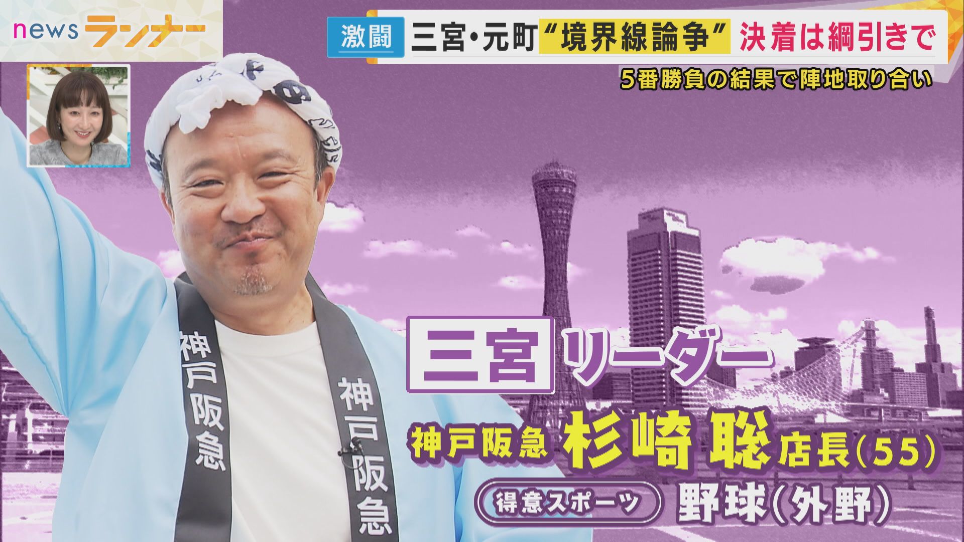 元町側は大丸神戸店の松原亜希子店長(59)。「元町ラバーズとしては絶対に勝ちたい。法被つくっちゃたんで燃え燃えです」と燃えています。
