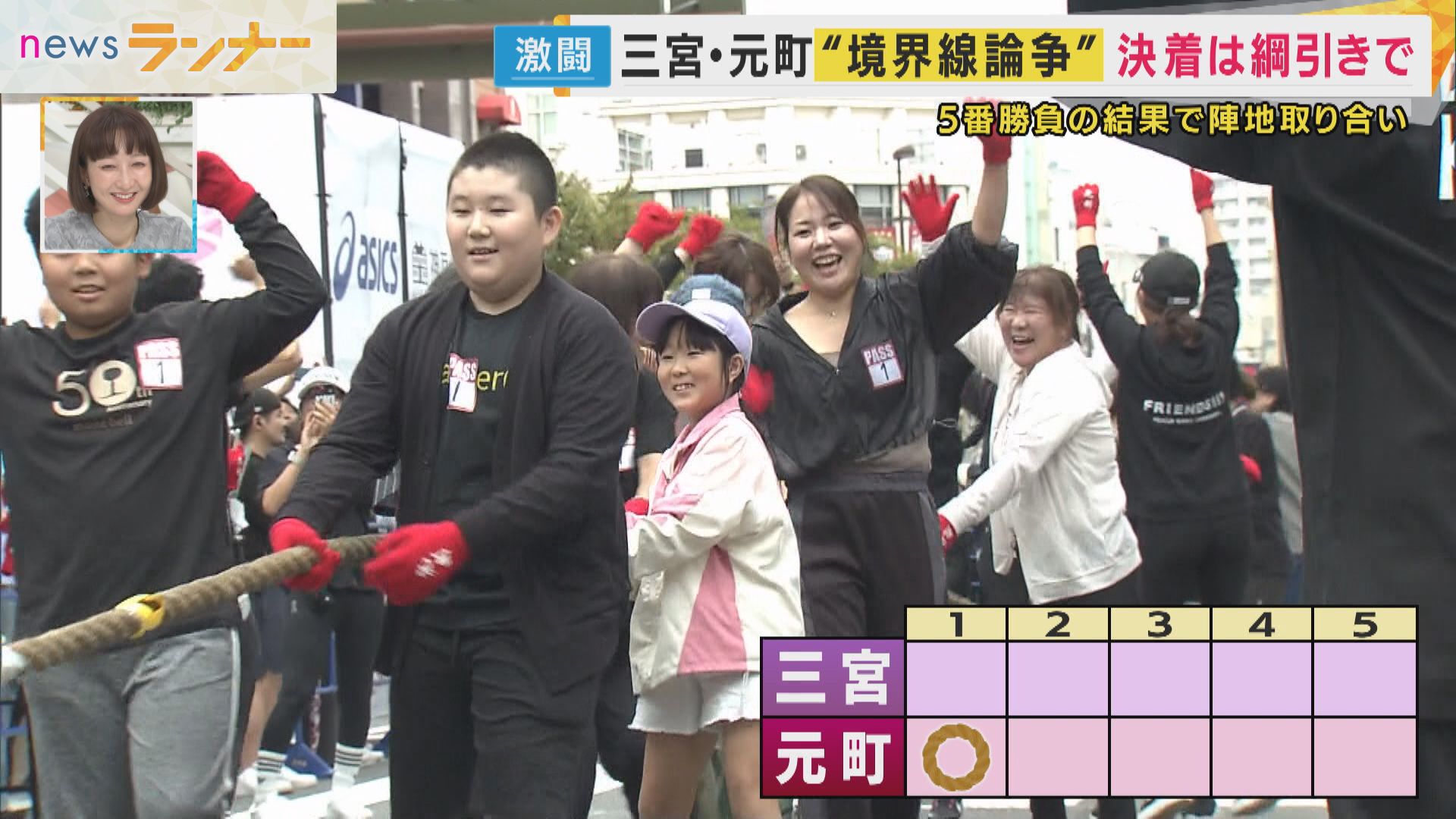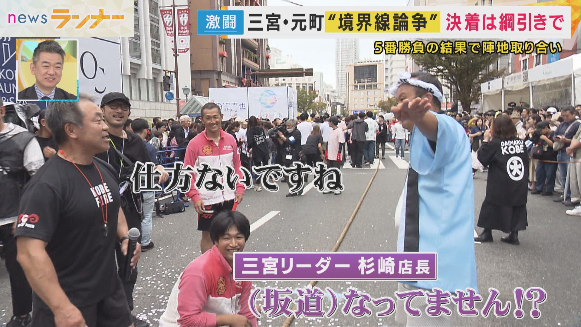 神戸の中心地「三宮」と「元町」の境界はどこなのか。長年はっきりとしなかったこの問題に決着を付けようと、“綱引き”が開催されました。