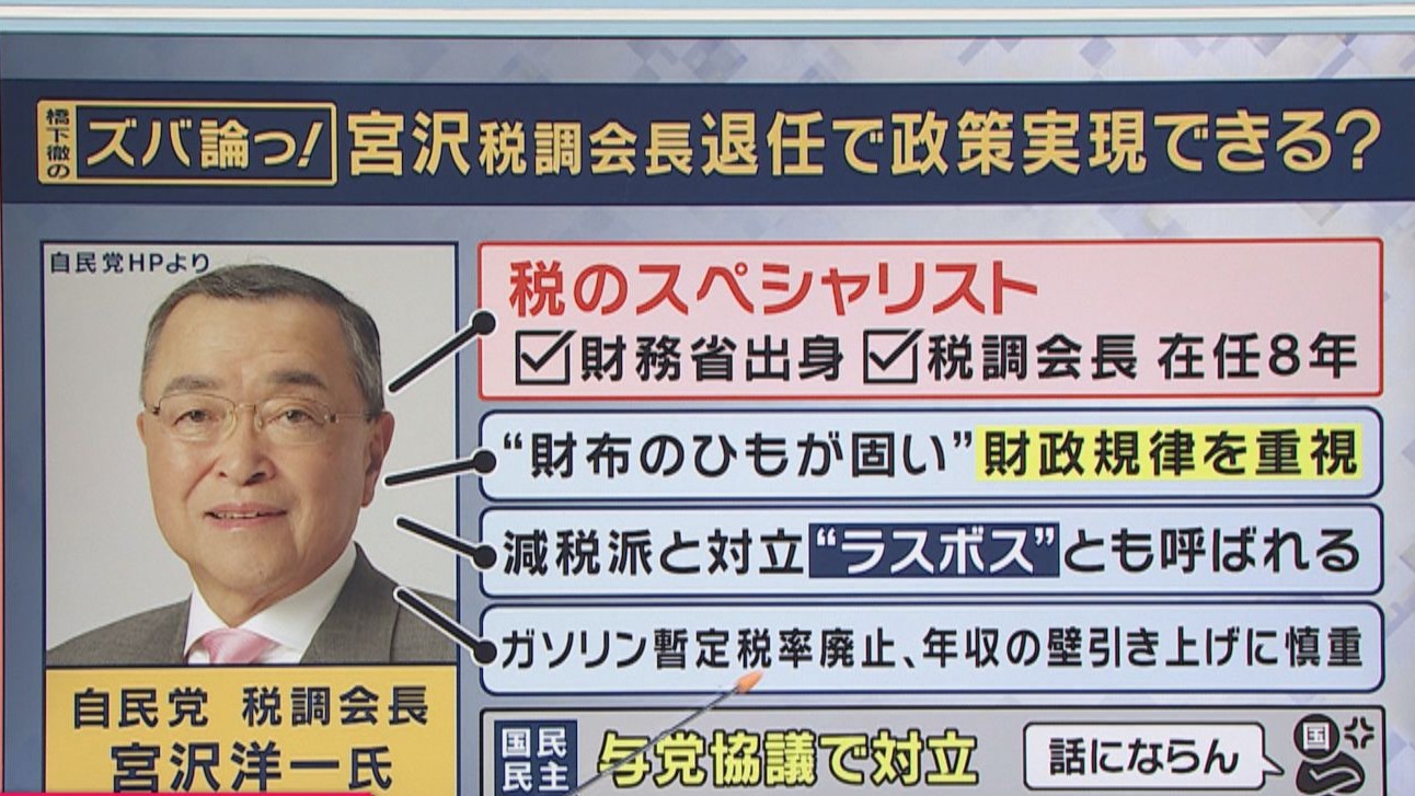 (高市総裁は)これを実現するために、ずっと“壁”になっていた、自民党の税制調査会の宮沢さんという会長を交代させます。退任させます。もうここまで決まっています。これで(2つの政策が)通りやすくなります。