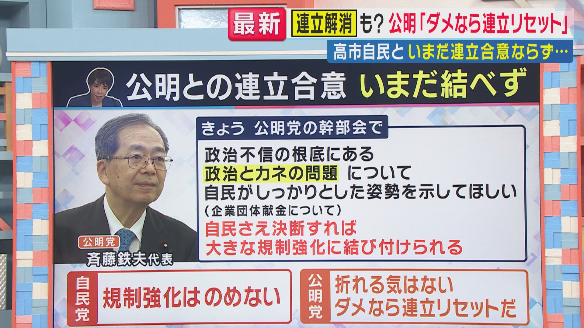 高市総裁の就任後、自民党と公明党は連立の合意を結べていません。このまま“連立解消”の可能性はあるのでしょうか。