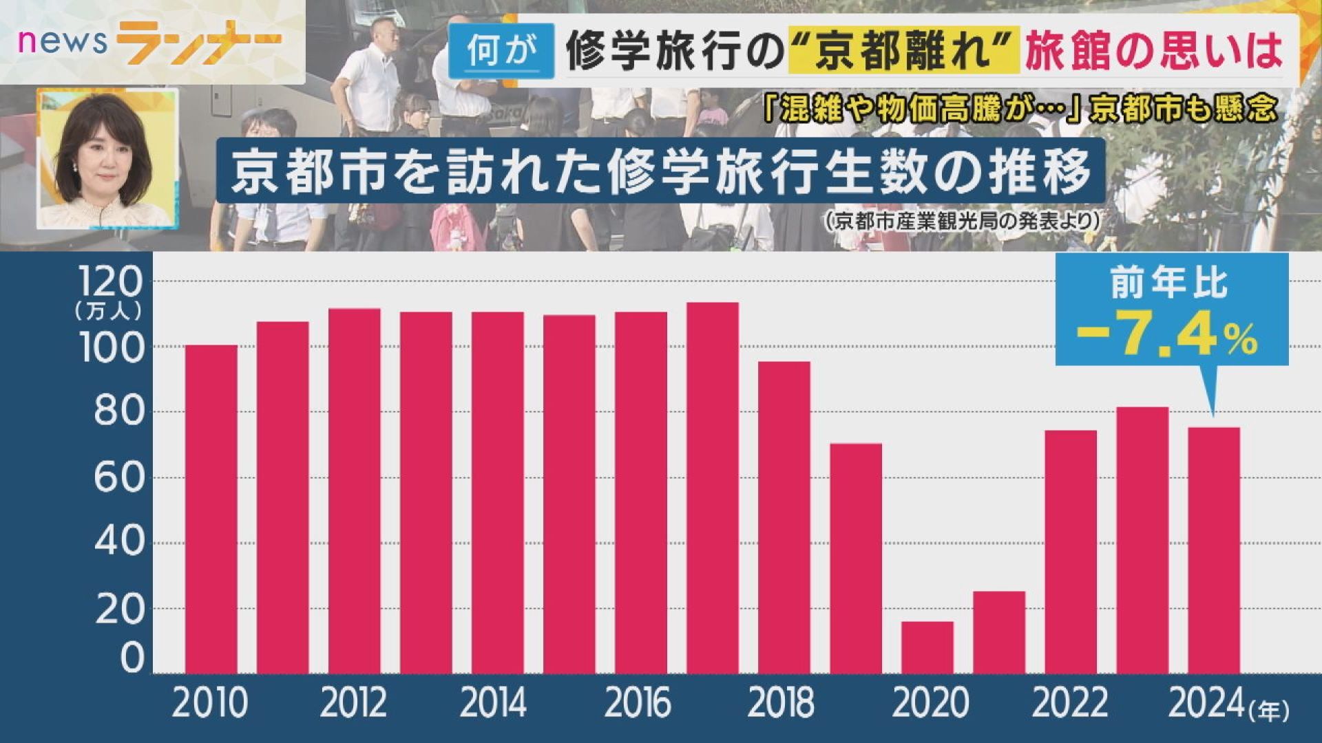 京都市の調査では去年の修学旅行生の数は前の年より7.4%減少。