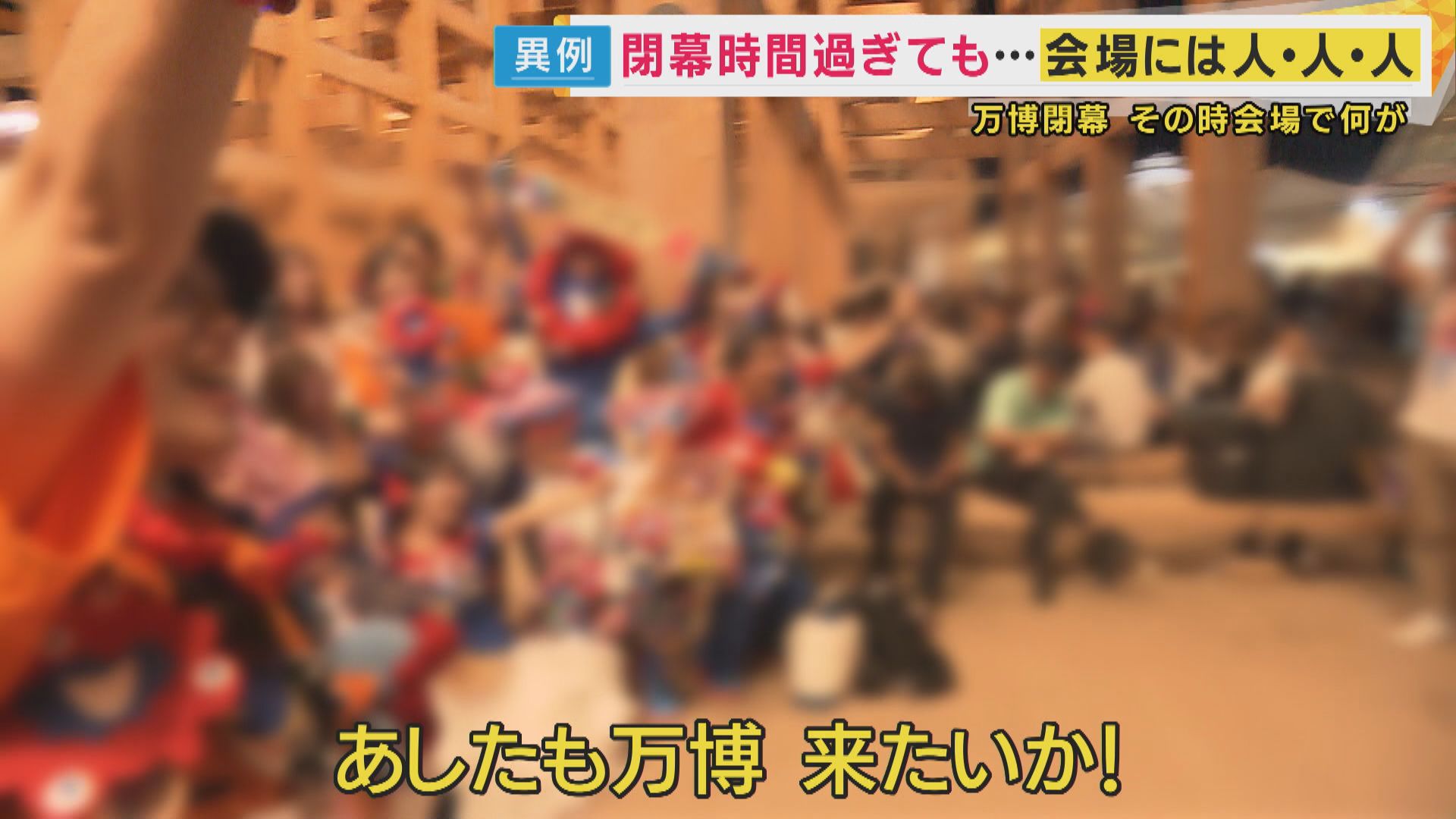 閉幕時間の午後10時を過ぎても、大屋根リングの下には帰ろうとしない大勢の“万博ロス”の人たちが…。