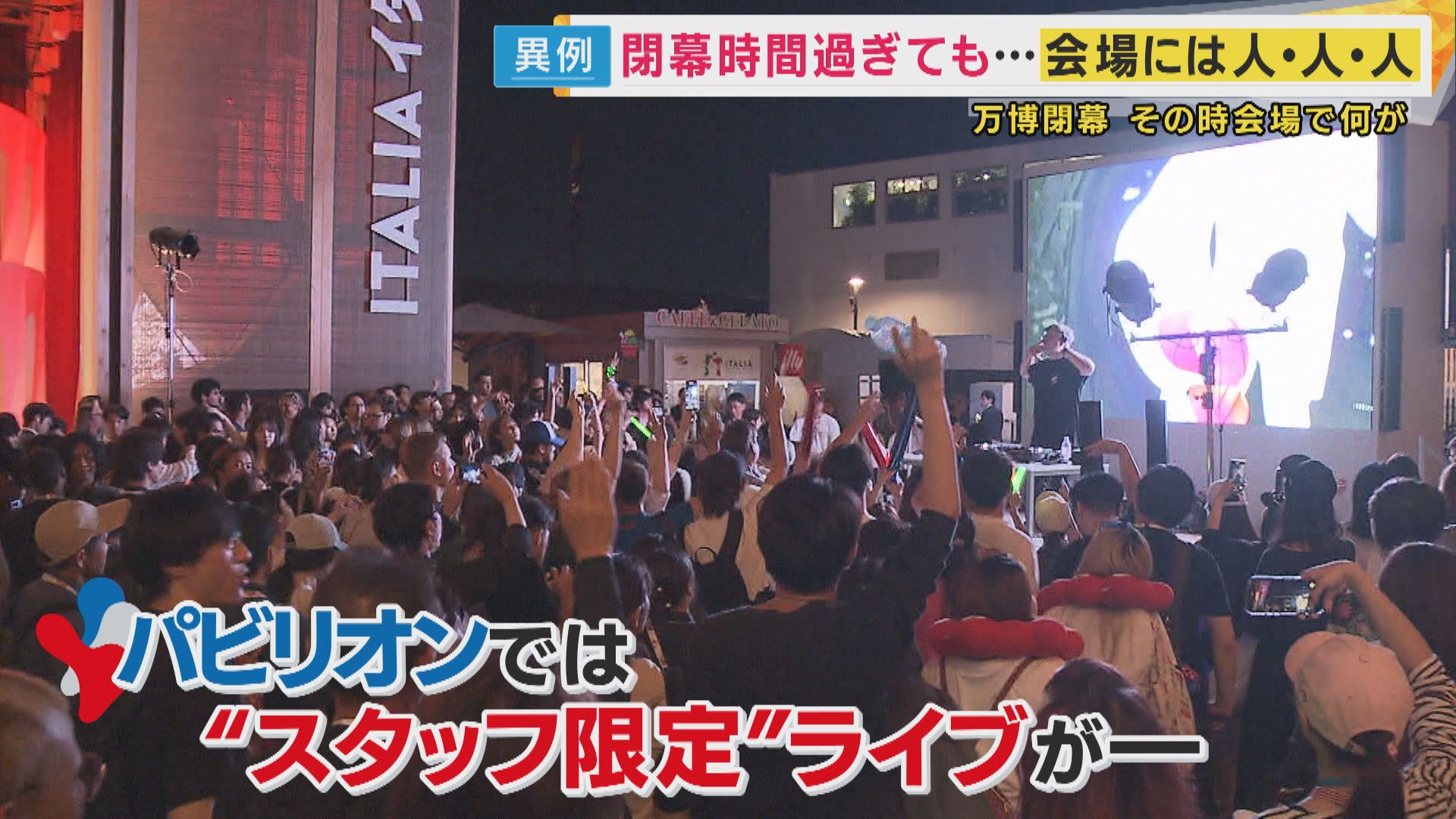 【記者リポート】「閉幕から1時間たちました。イタリア館前ではスタッフがお祭り騒ぎです」