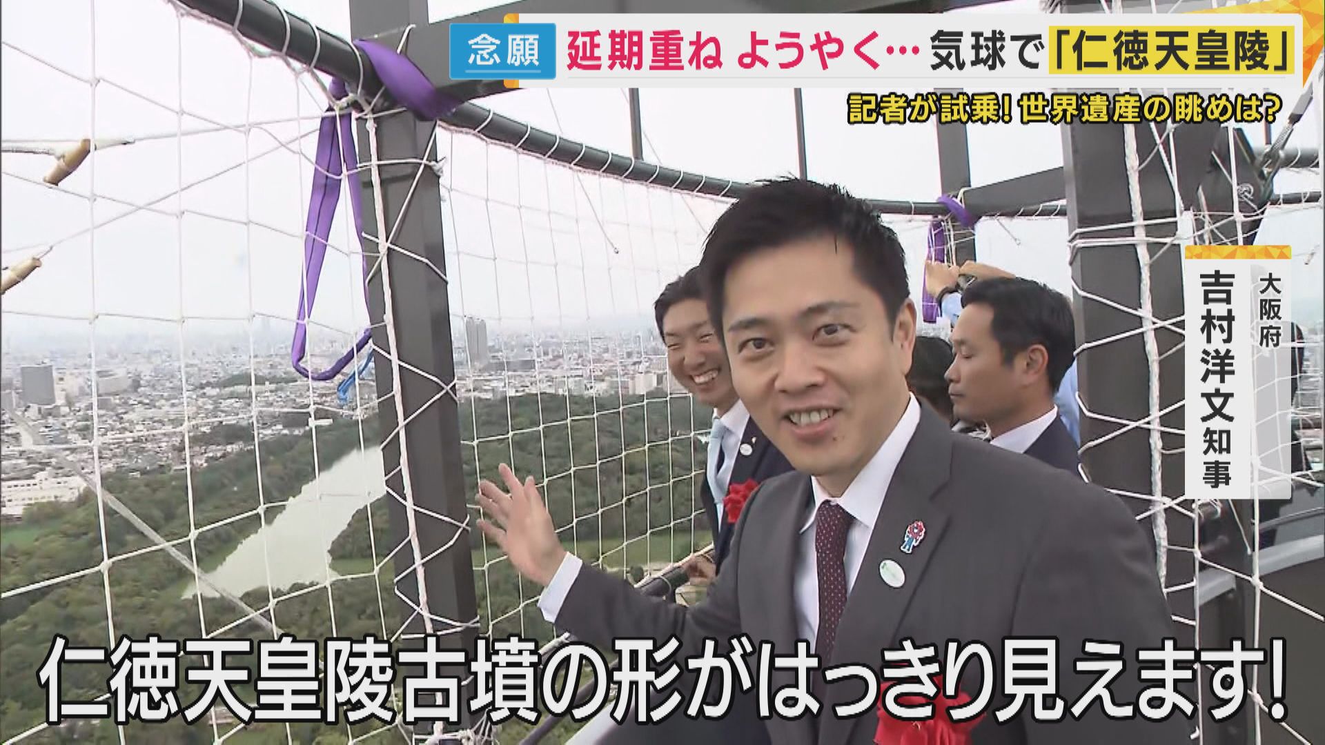 【大阪府・吉村洋文知事】「高いですね!仁徳天皇陵古墳の形がはっきり見えますね」