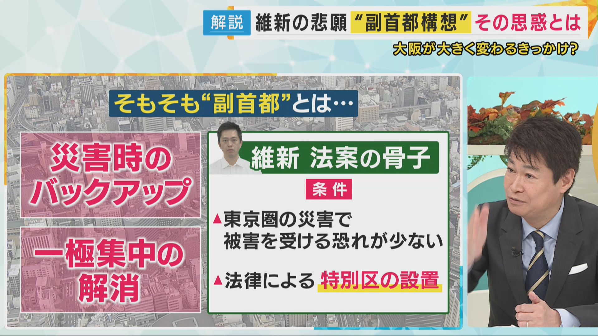 【関西テレビ 大阪府庁キャップ 加藤さゆり記者】「災害時のバックアップや、東京一極集中の解消が必要な部分があるということで、自民党の高市総裁もこれを推進していくという方向ですが、大阪府議会からは反対の声も上がっています。