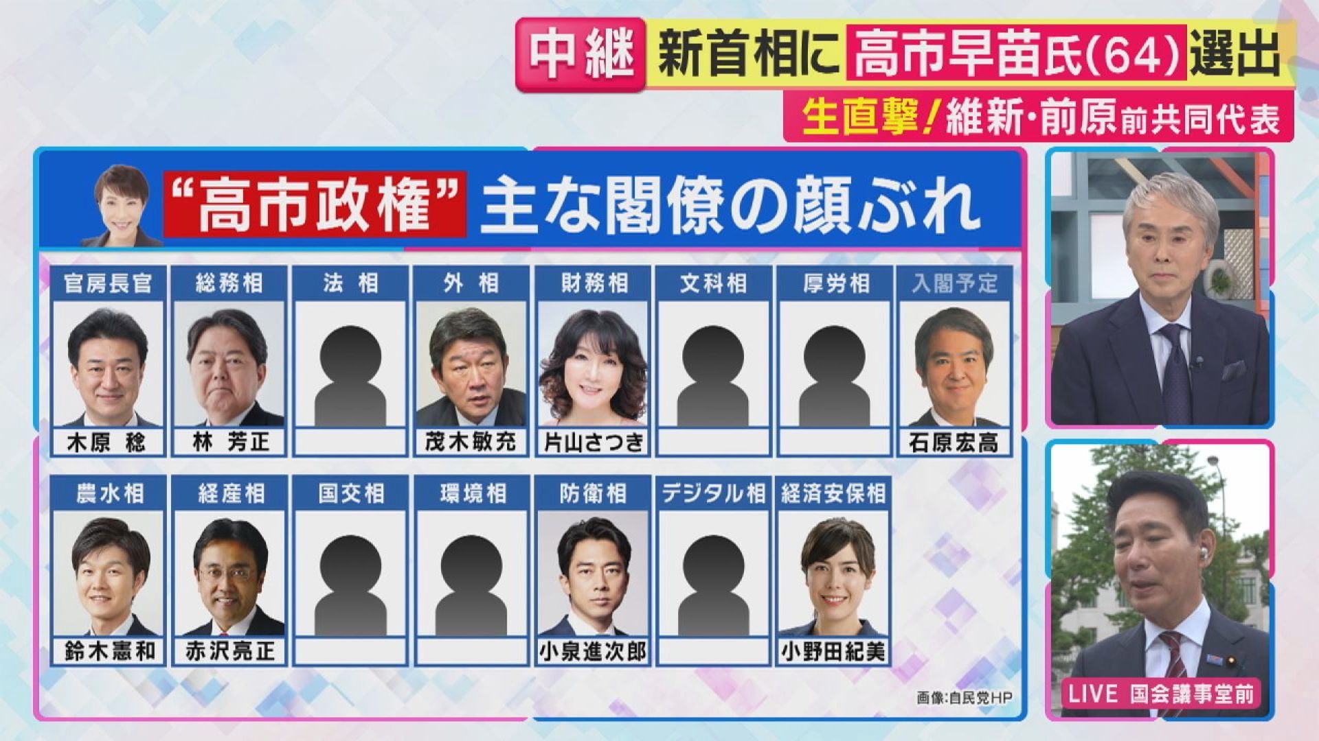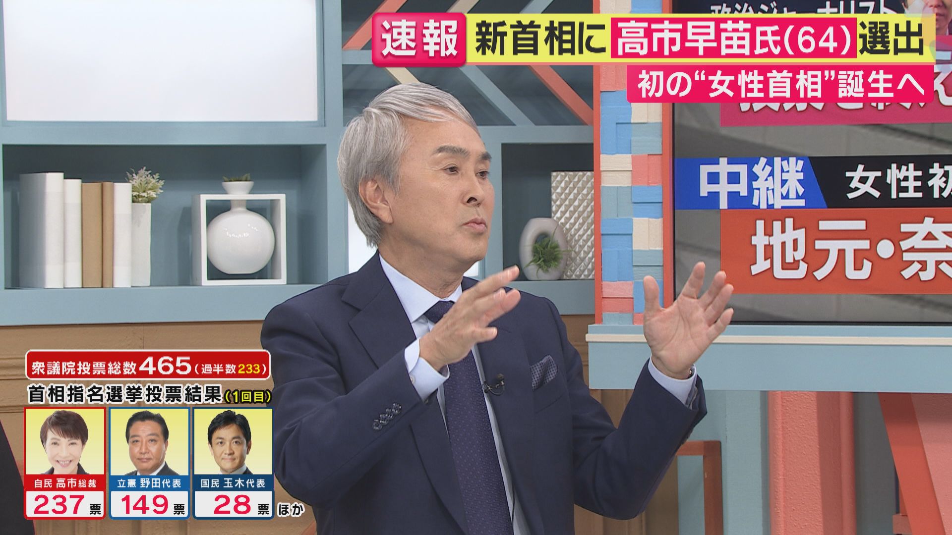 自民党の元幹事長で、政治ジャーナリストの石原伸晃さんは史上初女性の首相誕生の瞬間について、「高市さんがきのう(20日)、(日本維新の会)吉村さんと合意文章に署名した時は、笑顔でしたけども、選出されたと言われた瞬間、顔がぴゅっと険しい顔になったのが、すごく印象に残りました。責任をこの瞬間、感じられたんだと思いました」と語りました。