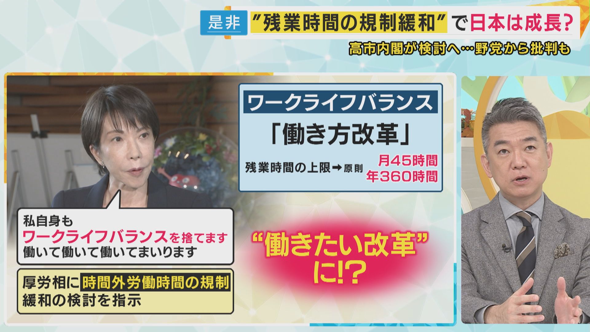「残業時間の規制緩和」は、高市総理が総裁選の時から公約に掲げていて、総裁になった際の「ワークライフバランス捨てます宣言」が話題を集めていました。