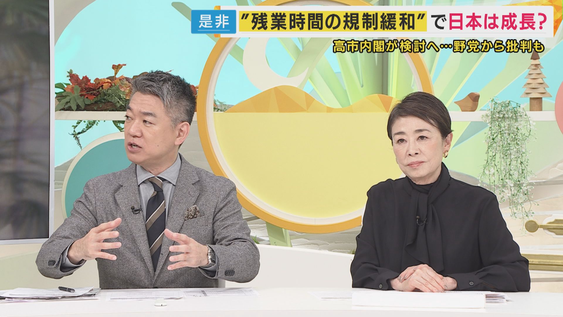 【橋下徹さん】「僕は賛成です。高市さんの、『働いて働いて』が批判されてますけども、労働者の立場は労働時間しっかり守らなきゃいけませんけども、経営者とか個人事業主とか、僕自身も個人事業主だからよく分かんないんだけど。