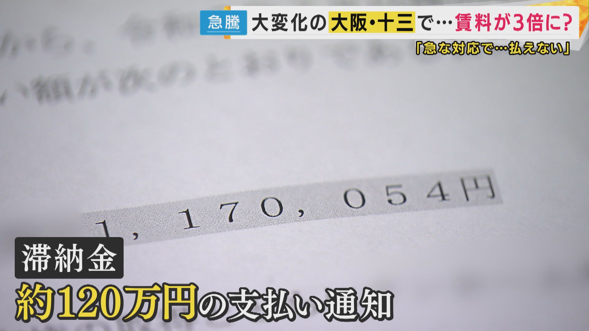 男性によると、この店を含むおよそ400坪の土地を東住吉区にある不動産会社が購入。不動産会社は、男性に対し賃料を、それまでのおよそ3倍に設定しました。