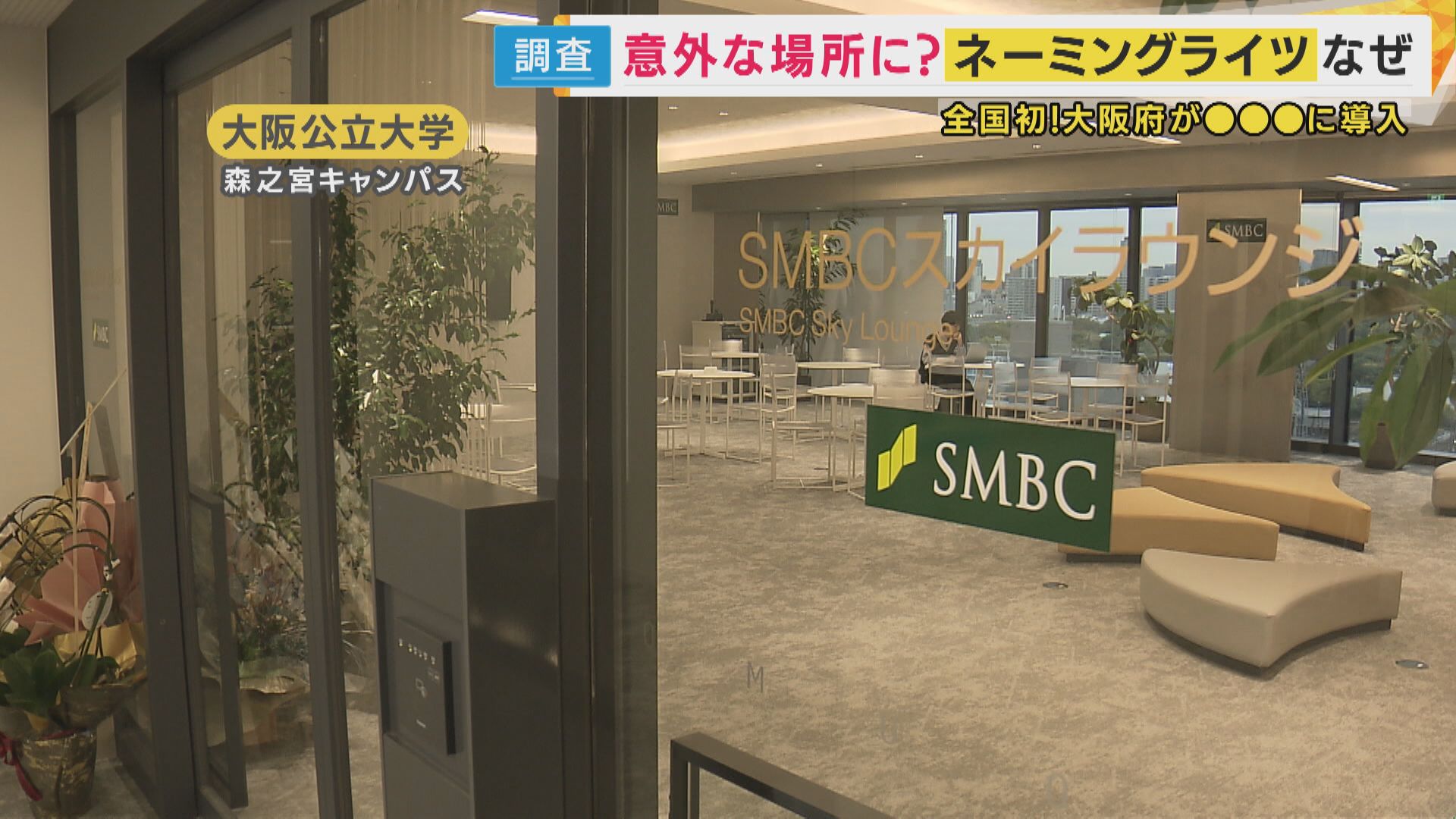 【記者リポート】「ここ大阪公立大学の学生ラウンジなんですが、壁のいたるところに企業の名前が貼ってあります」