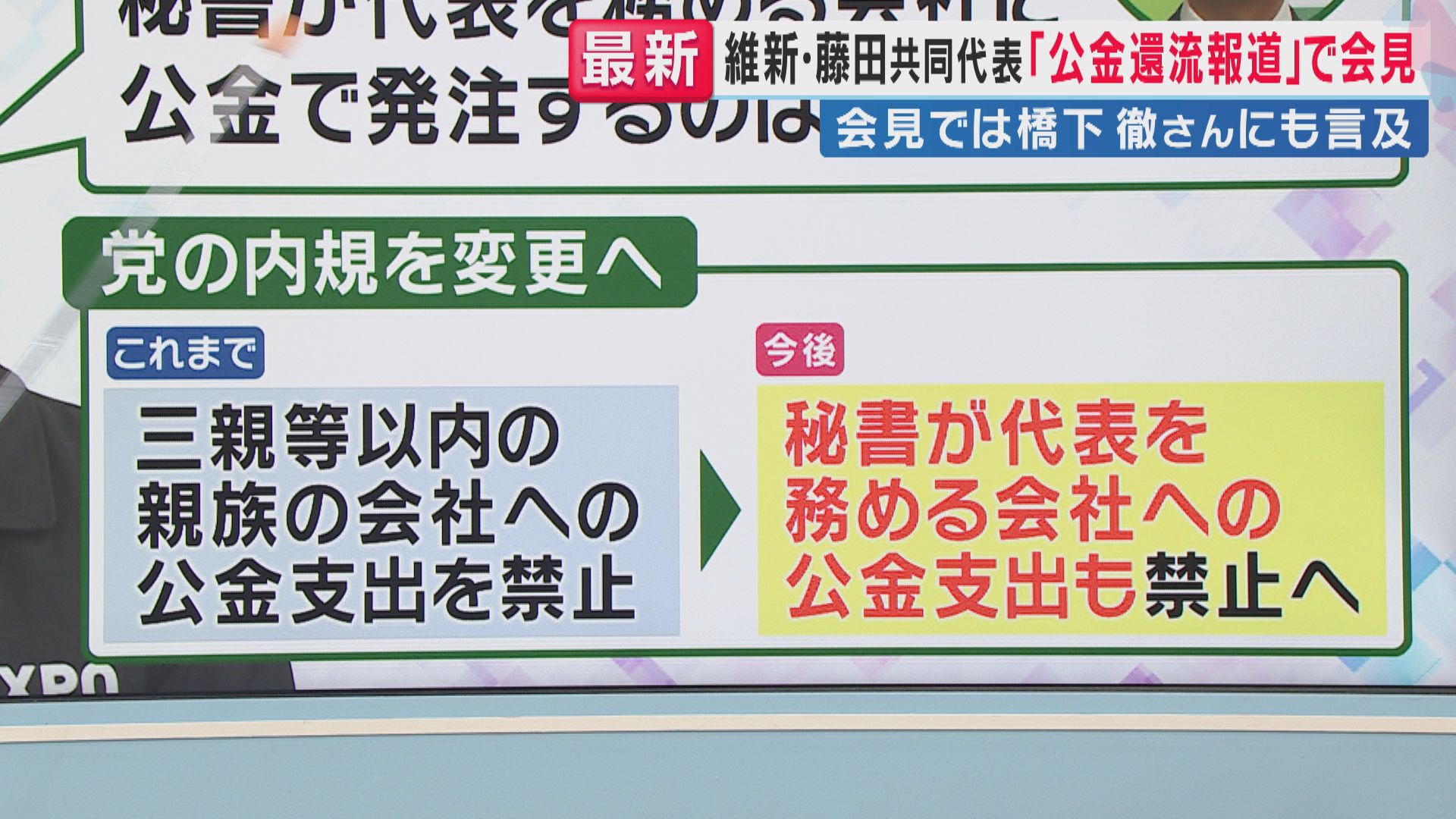 日本維新の会・藤田共同代表が「秘書が代表を務める会社にビラや機関紙などの印刷を依頼し、政党交付金などから費用を支払っていた」などと報じられたことについて、4日記者会見で釈明しました。