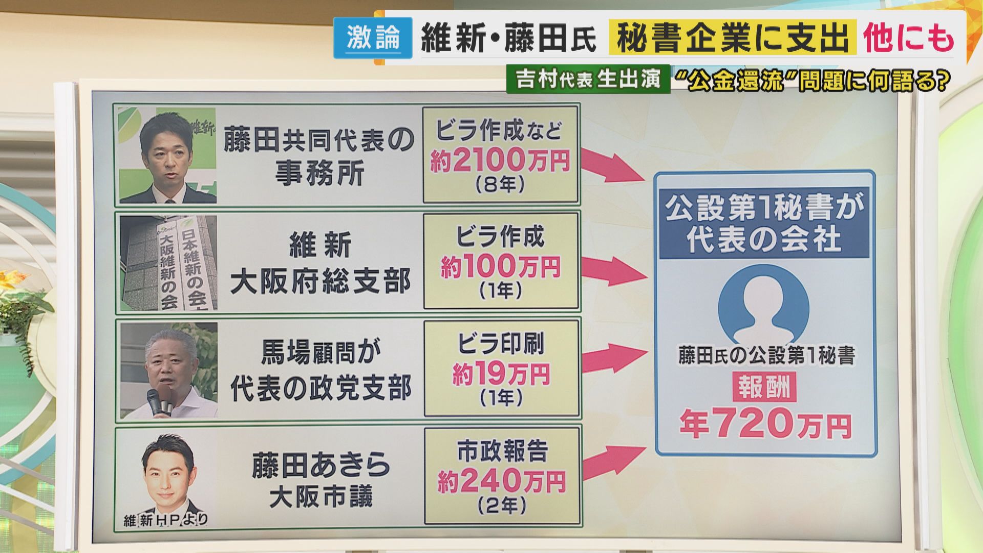この状況について関西テレビ「newsランナー」で吉村代表は、「藤田共同代表の秘書の会社が、不当に高い費用を請求したり、実体がなかったりしたわけではなく、きちんと仕事をする会社だったので、問題意識が持てなかったのでは」と釈明。