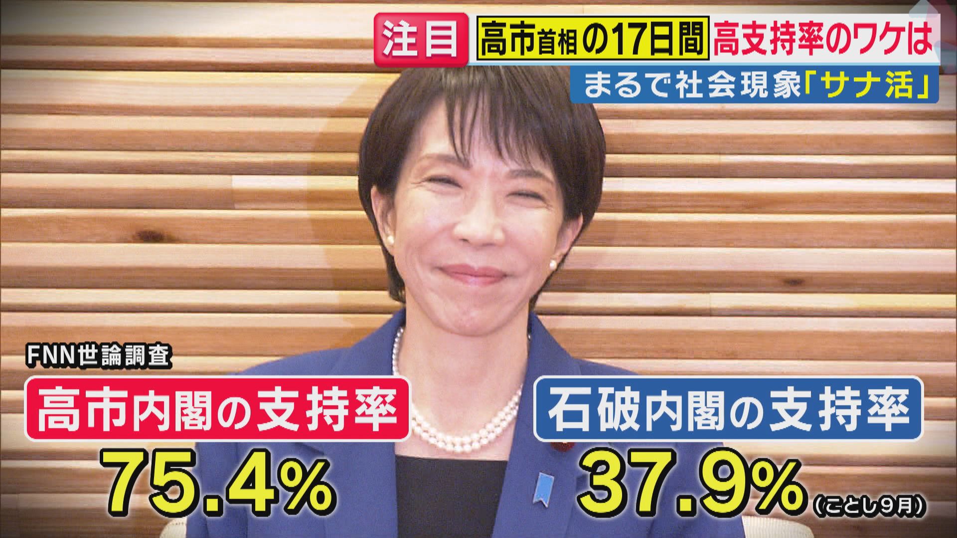 高市内閣の支持率は、最新のFNN世論調査で75.4%と、前政権の約2倍にまで上昇。特に若年層からの支持が高いことが特徴です。