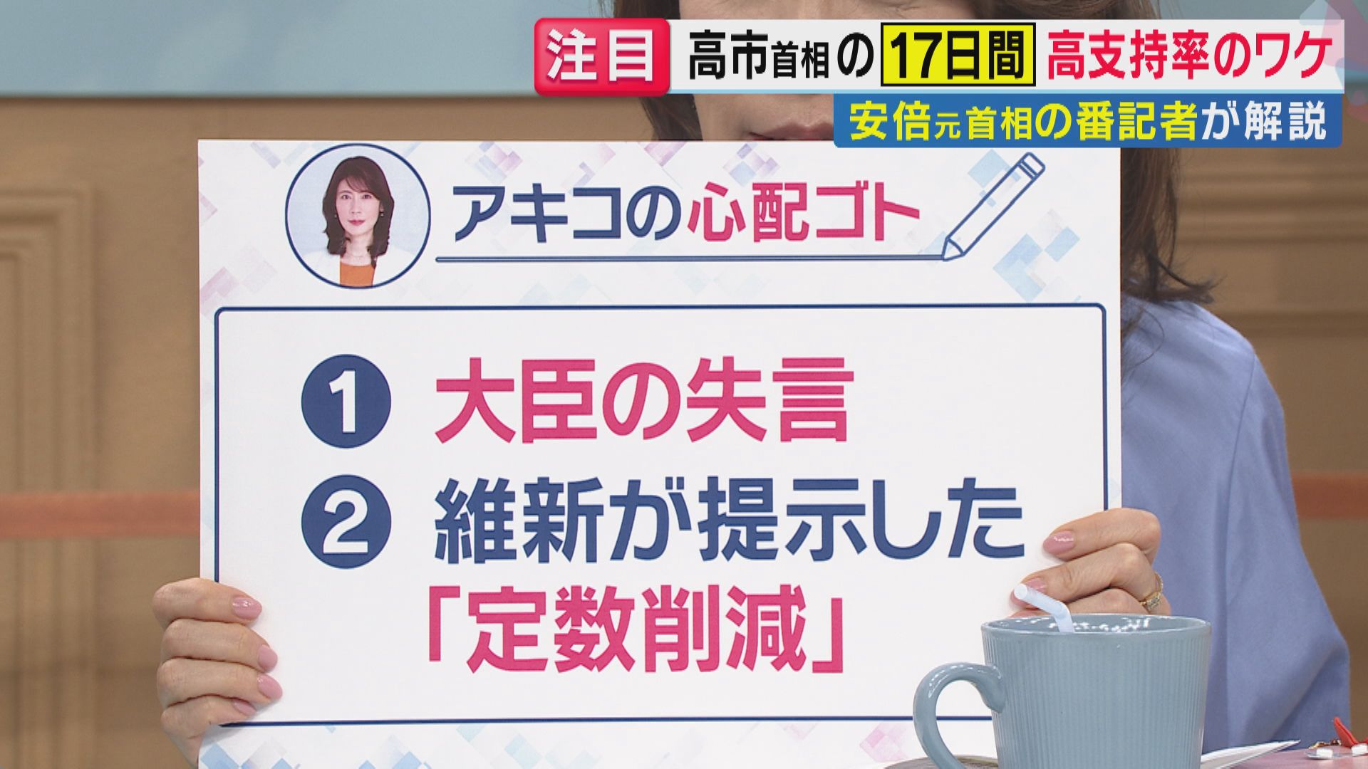 17日間で国内外から注目を集め、高支持率を維持する高市政権ですが、岩田さんは今後の課題として「大臣の失言が出た時にどう対応するか」「日本維新の会が提示している定数削減問題」を挙げました。