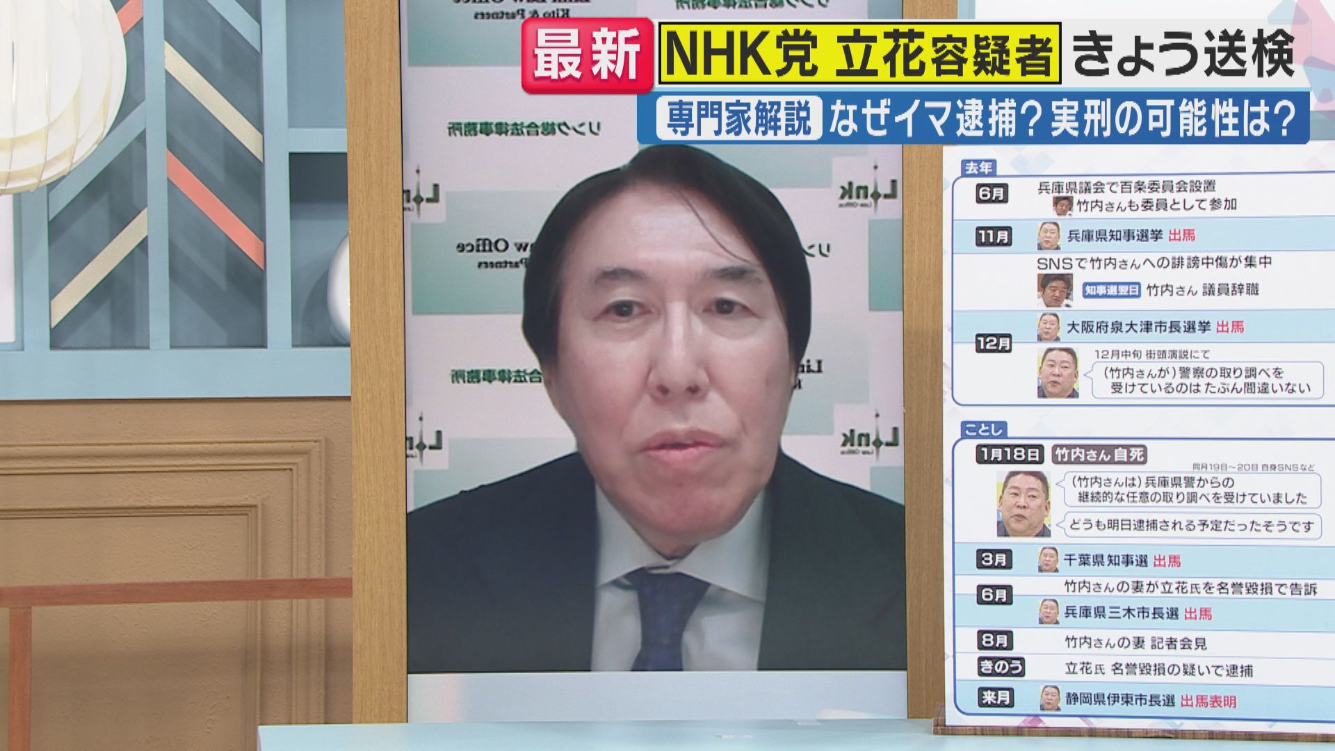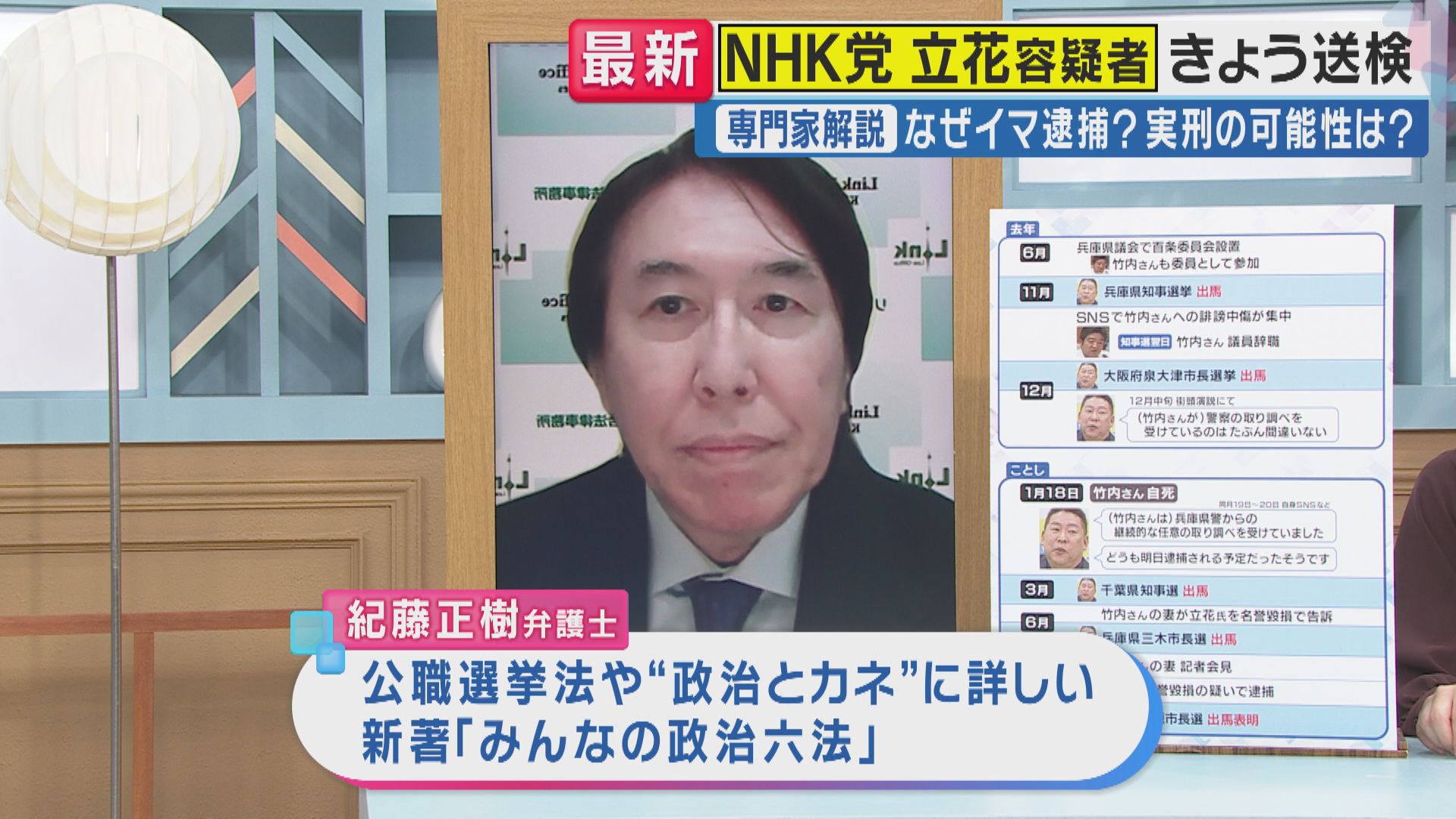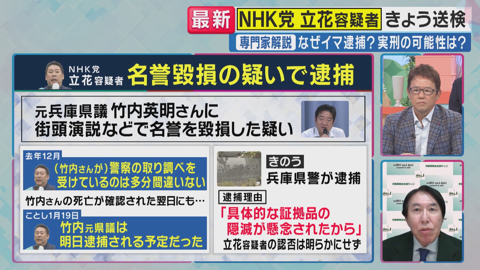 立花容疑者は「嘘の情報発信の問題性がむしろ問われている」紀藤弁護士が“死者の名誉毀損”巡って解説 NHK党党首・立花孝志容疑者 元兵庫県議の名誉を毀損した疑いで逮捕 2025年11月11日