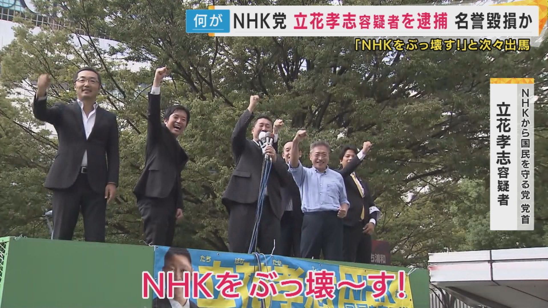 死亡した元兵庫県議会議員の男性への名誉毀損(きそん)の疑いで、9日「NHKから国民を守る党」の党首、立花孝志容疑者が逮捕されました。
