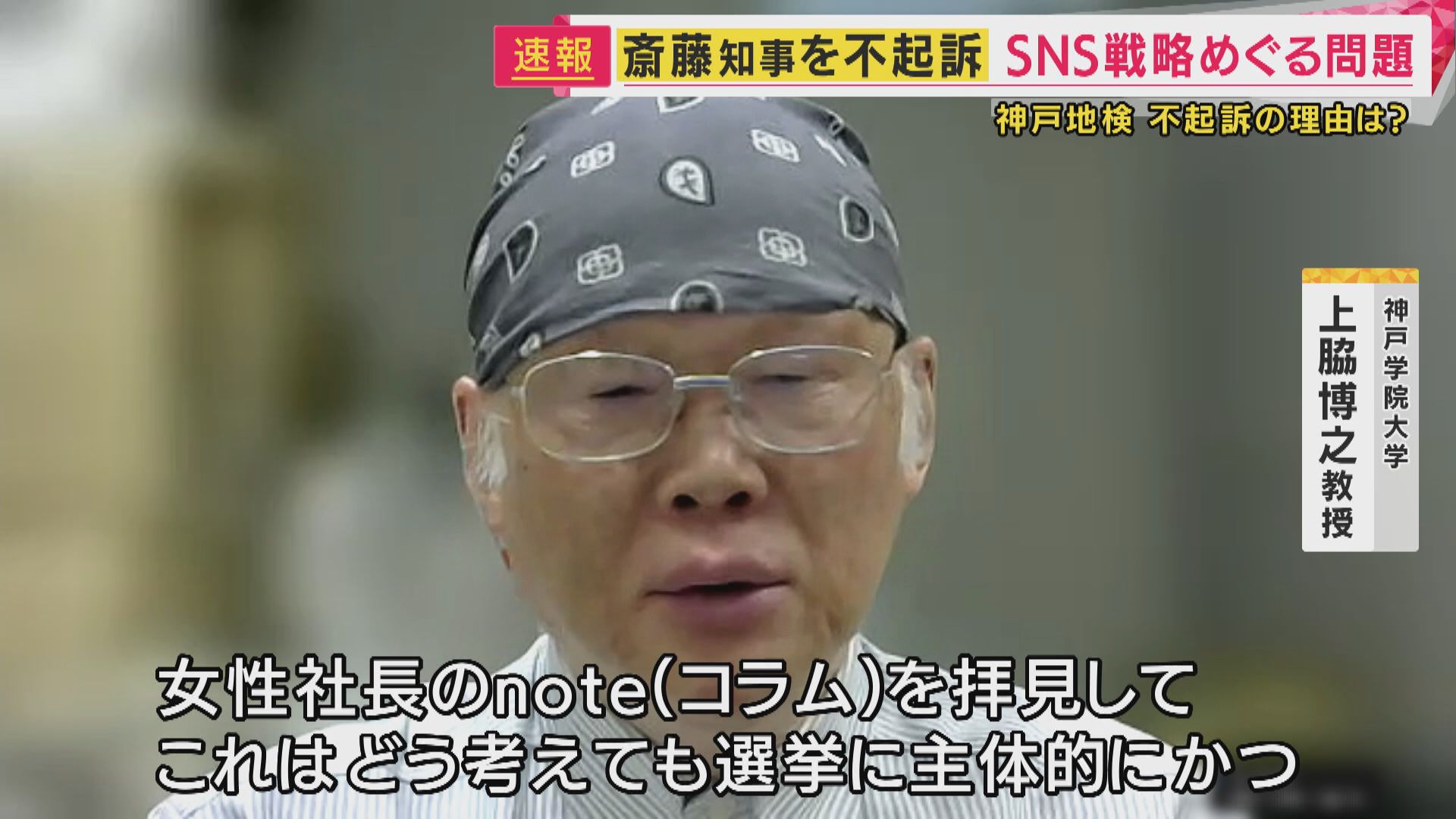 兵庫県知事選挙でのSNSの運用を巡り、斎藤知事とPR会社の代表が去年、公職選挙法違反の疑いで刑事告発されましたが、神戸地検は12日、不起訴処分としました。