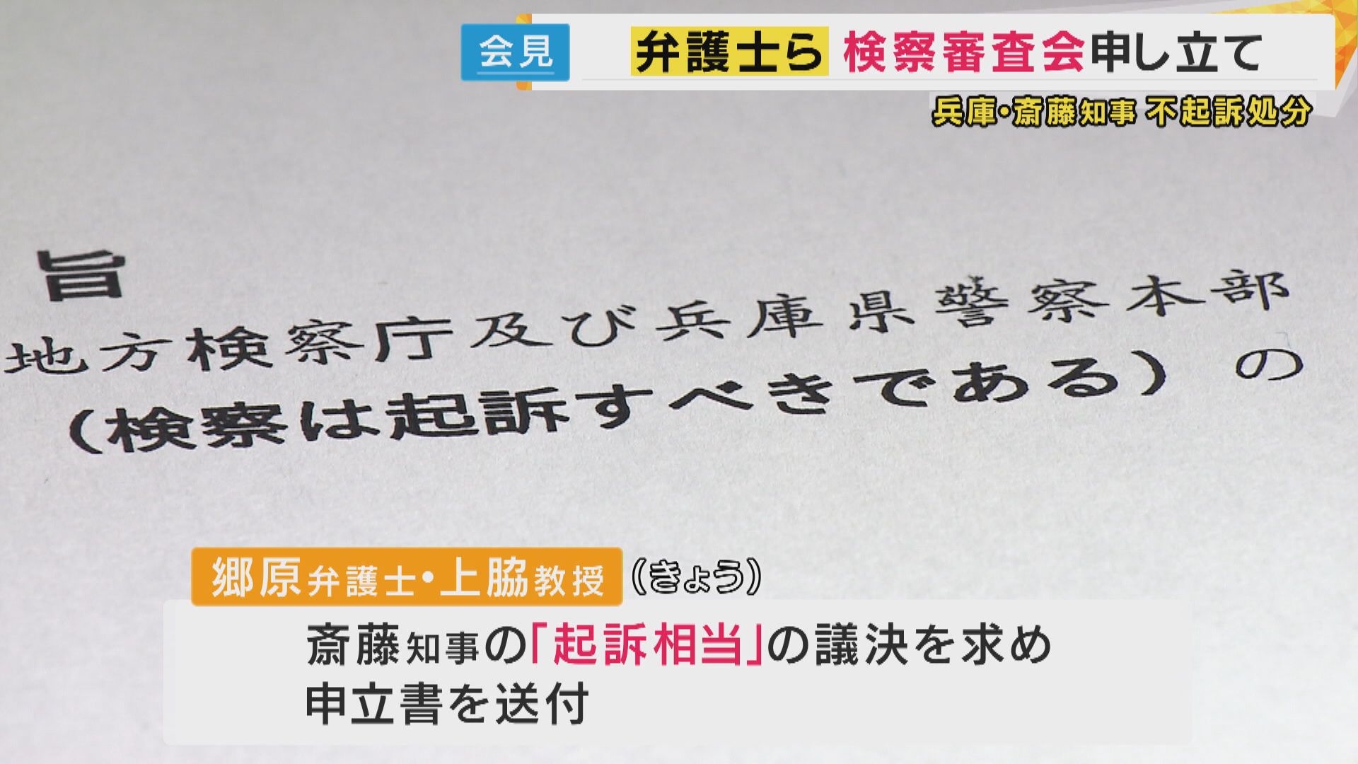 去年の兵庫県知事選挙をめぐる刑事告発で斎藤知事が不起訴になったことを受け、弁護士らが検察審査会に申し立てを行いました。
