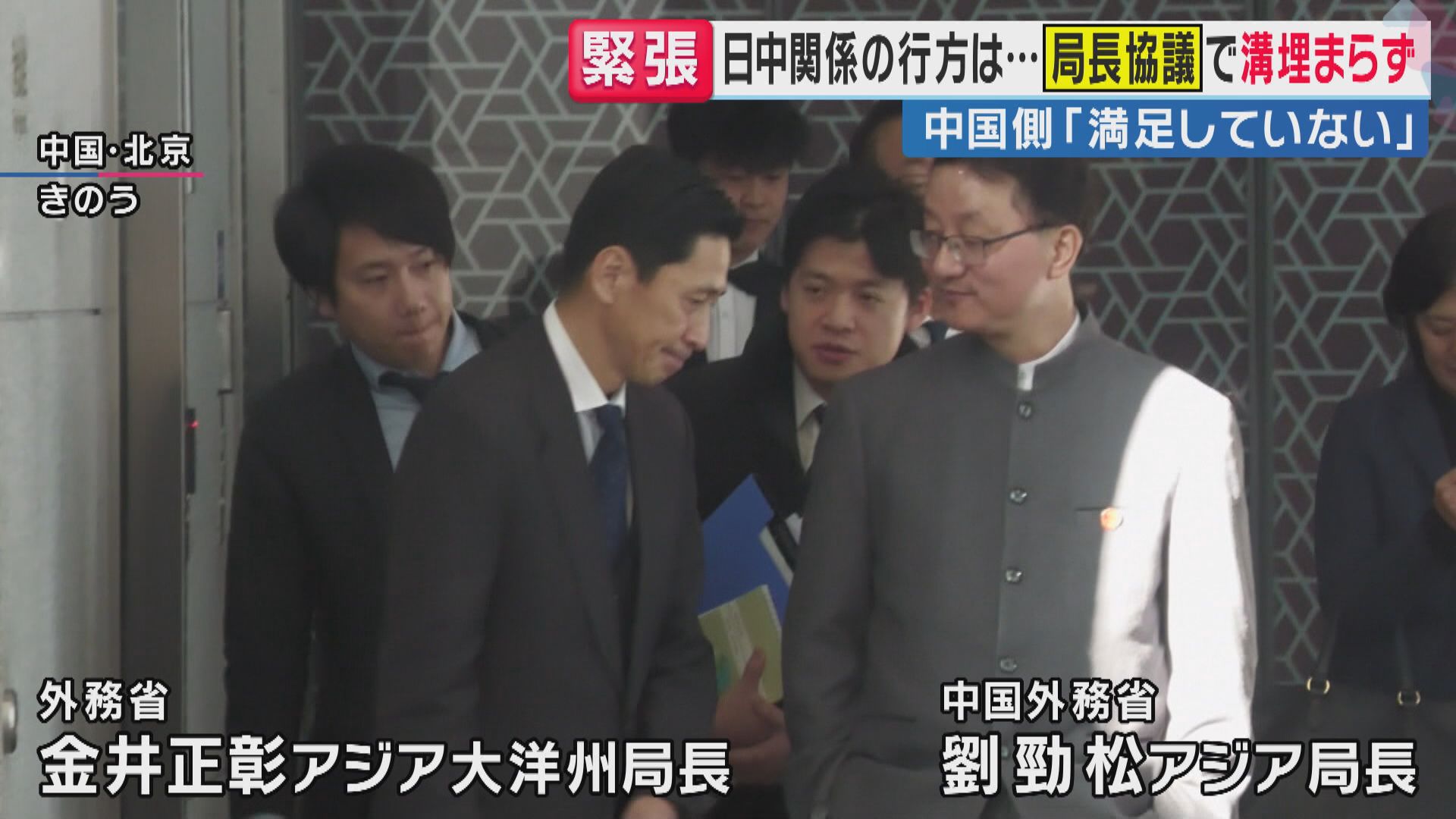 これに対し中国外務省の劉勁松(りゅう・けいしょう)局長は、台湾有事や存立危機事態をめぐる発言の撤回を求め、協議について問われ「当然満足していない」と応じたとのことです。
