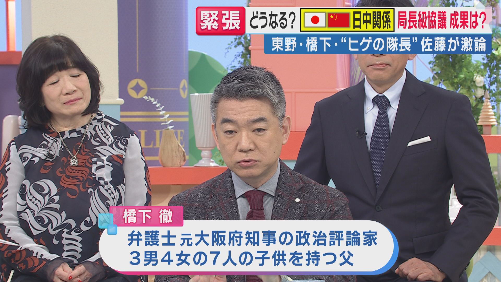【橋下徹氏】「日本も中国もそうです。日本だとこうやって放送するじゃないですか。(だから)中国メディアの方にこれを撮らせている。完全に仕組んで、明らかに中国の局長の方が、態度が上、偉そうにしているという雰囲気を出している」と分析しました。