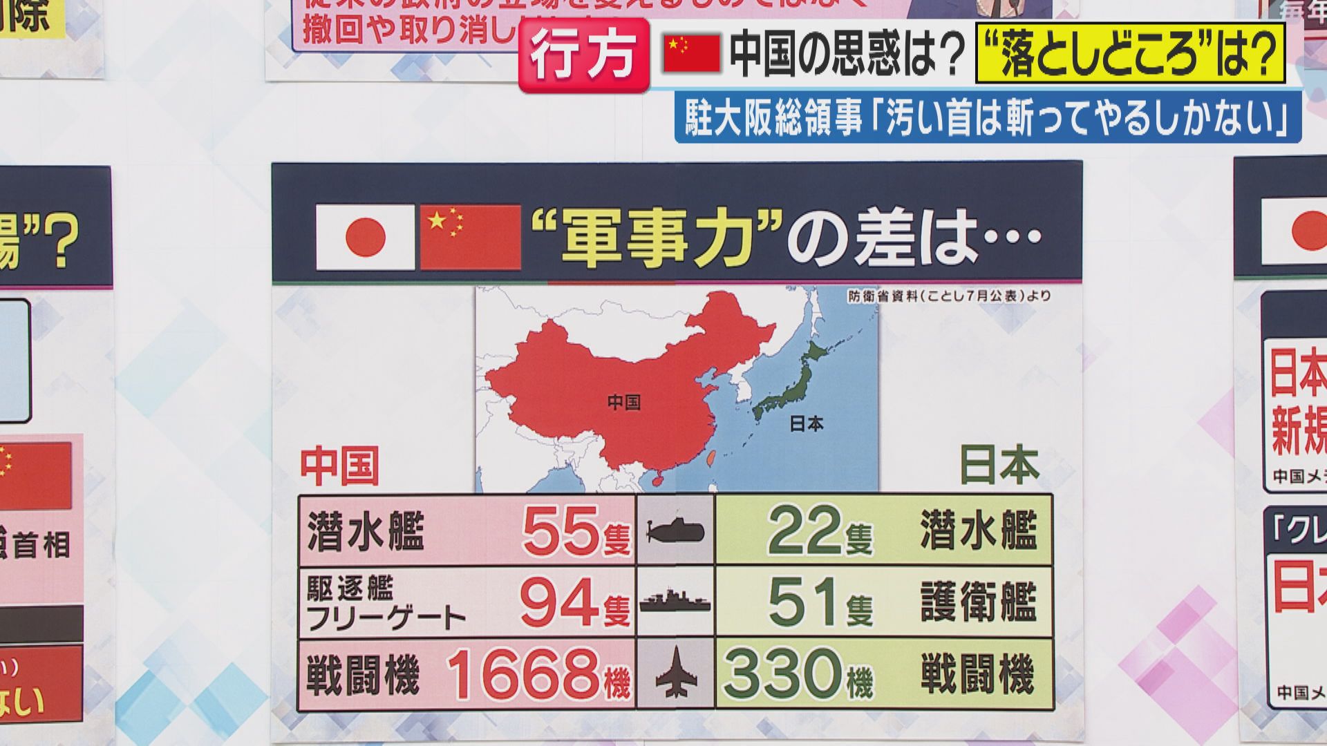 佐藤氏は落としどころについて「唯一日本のカードは駐大阪総領事の問題投稿。これは中国にとってはとげ。誰が考えたって外交官にしては言いすぎ。首を切るというのは絶対ありえない話」と分析。「中国の方ももうやばいと思って投稿を削除した」と指摘します。
