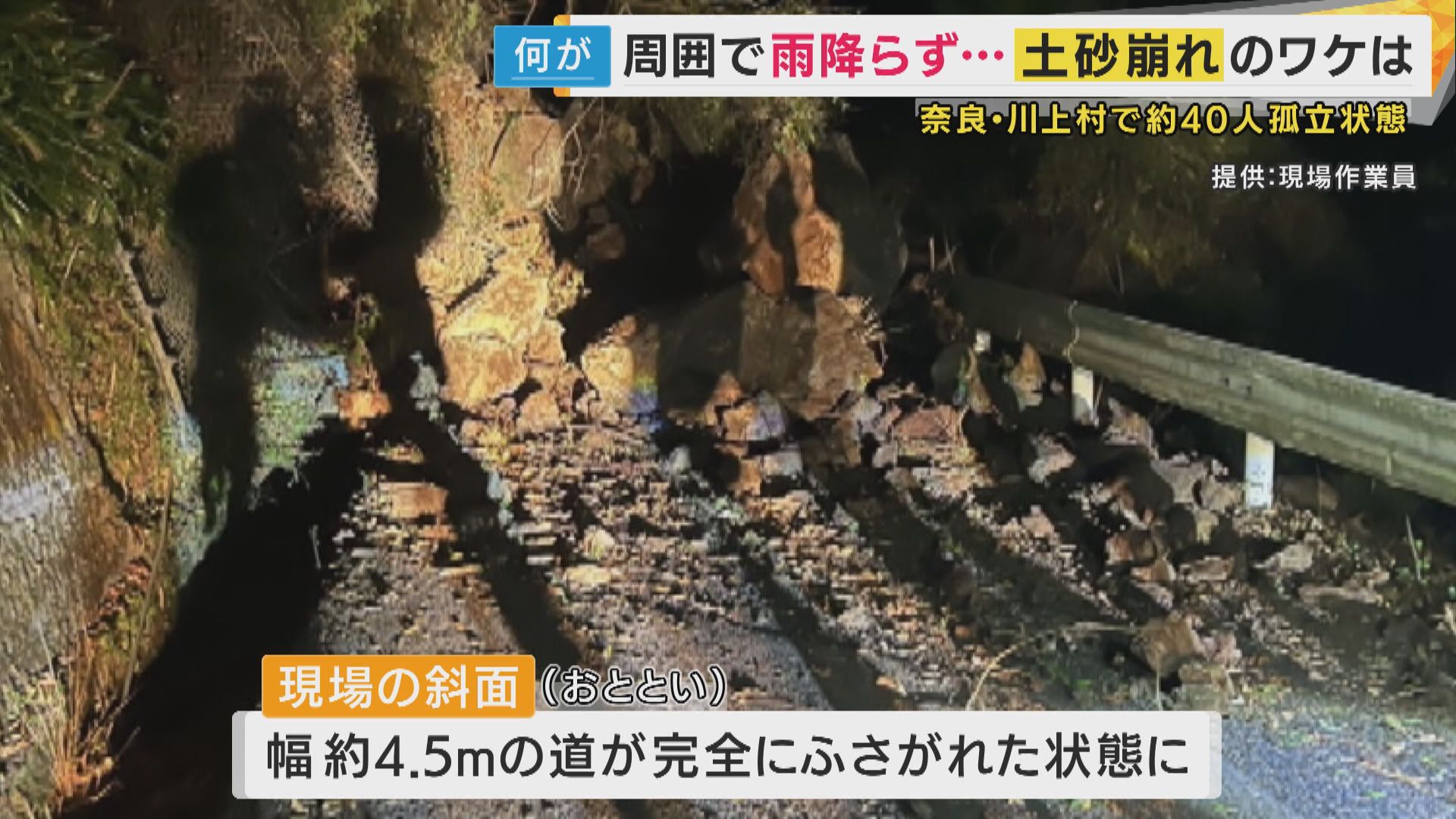 奈良県川上村で22日、土砂崩れが発生し、およそ40人が孤立状態となっています。
