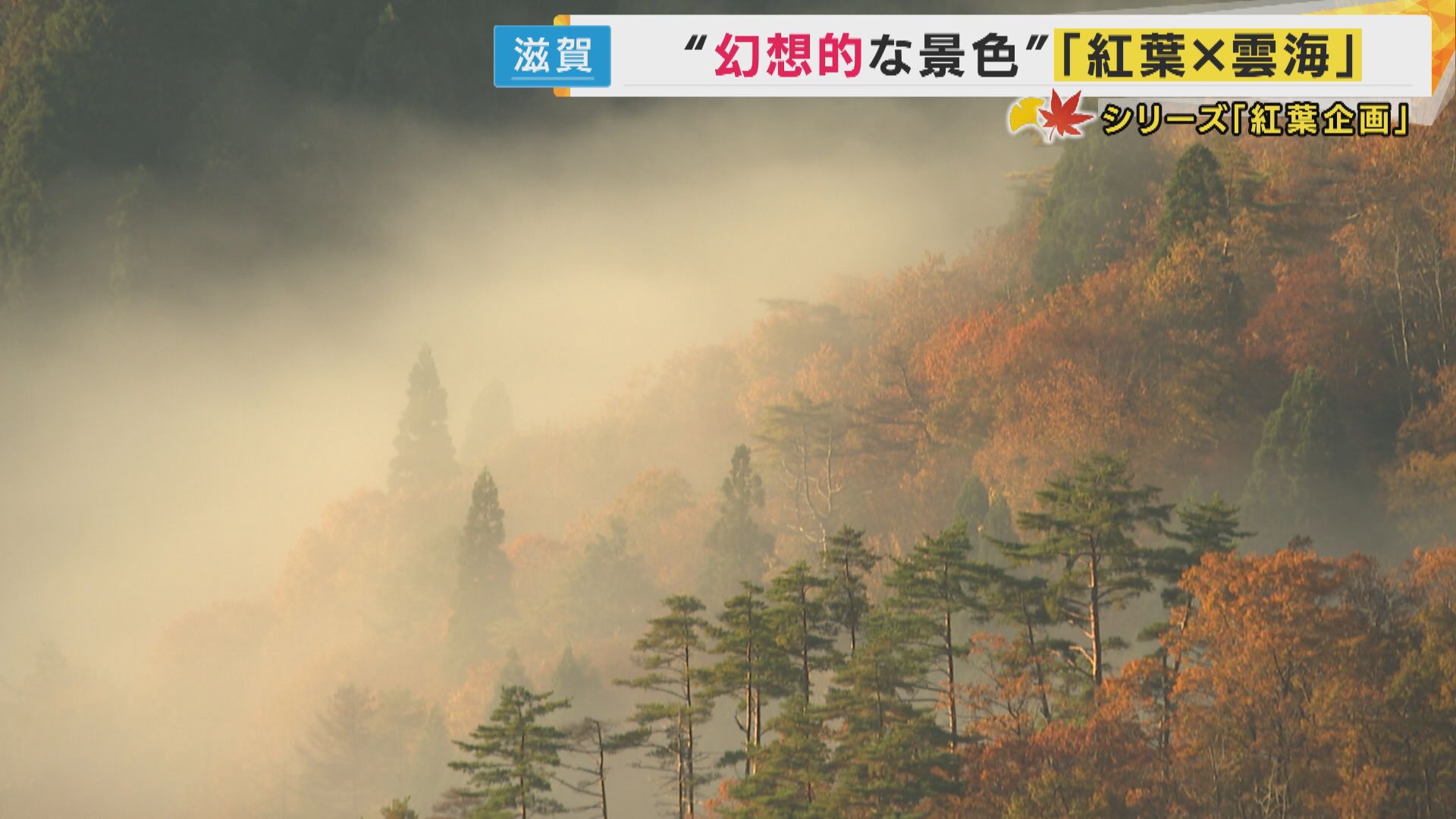 滋賀県高島市のおにゅう峠では、紅葉と雲海が織りなす幻想的な景色が多くの人を魅了します。