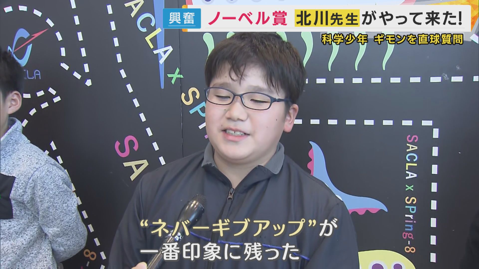 この出会いで丸林くんの心に残ったのは、「ネバーギブアップ」という言葉でした。「僕も(研究を)頑張ろうかなと思った」と語る丸林くんの目は輝いています。