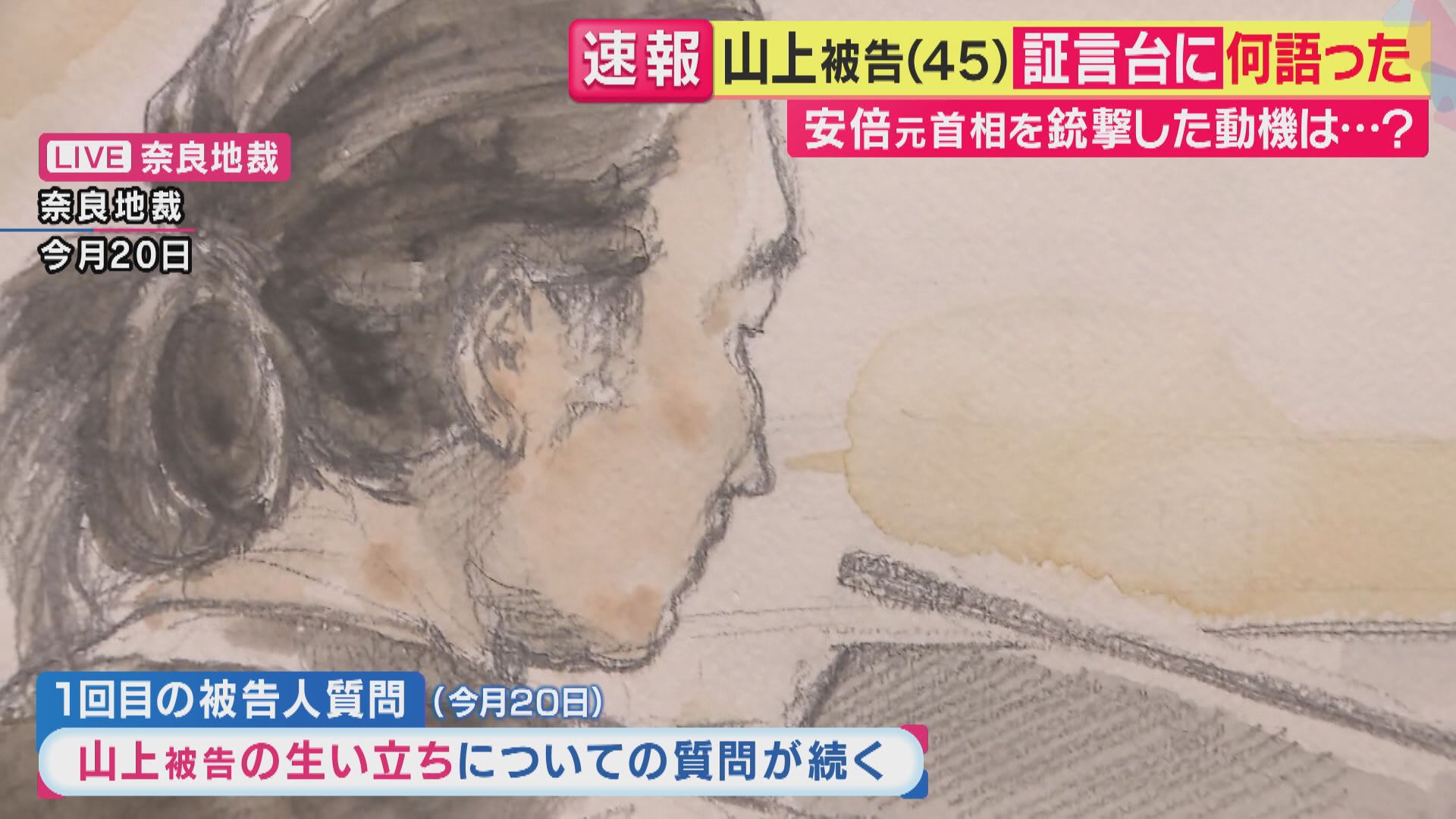 20日に行われた1回目の被告人質問では、母親が旧統一教会を信仰し、多額の献金を繰り返していたことなど、山上被告の生い立ちについての弁護側の質問が続きました。