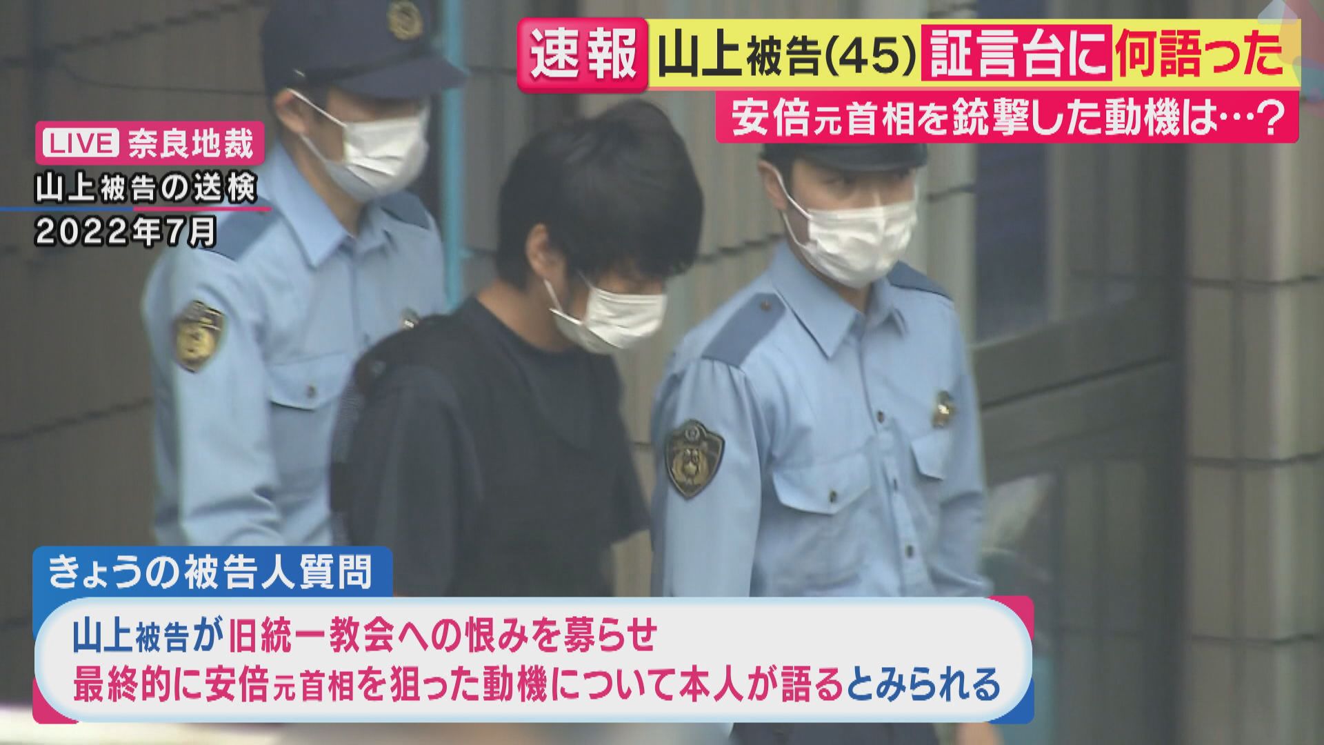 【大野雄斗記者】「きょう=25日の被告人質問では山上被告が旧統一教会への恨みを募らせ、最終的に安倍元総理を狙った動機などが主に聞かれると見られていて、本人の口から事件に至った経緯が語られると見られています。