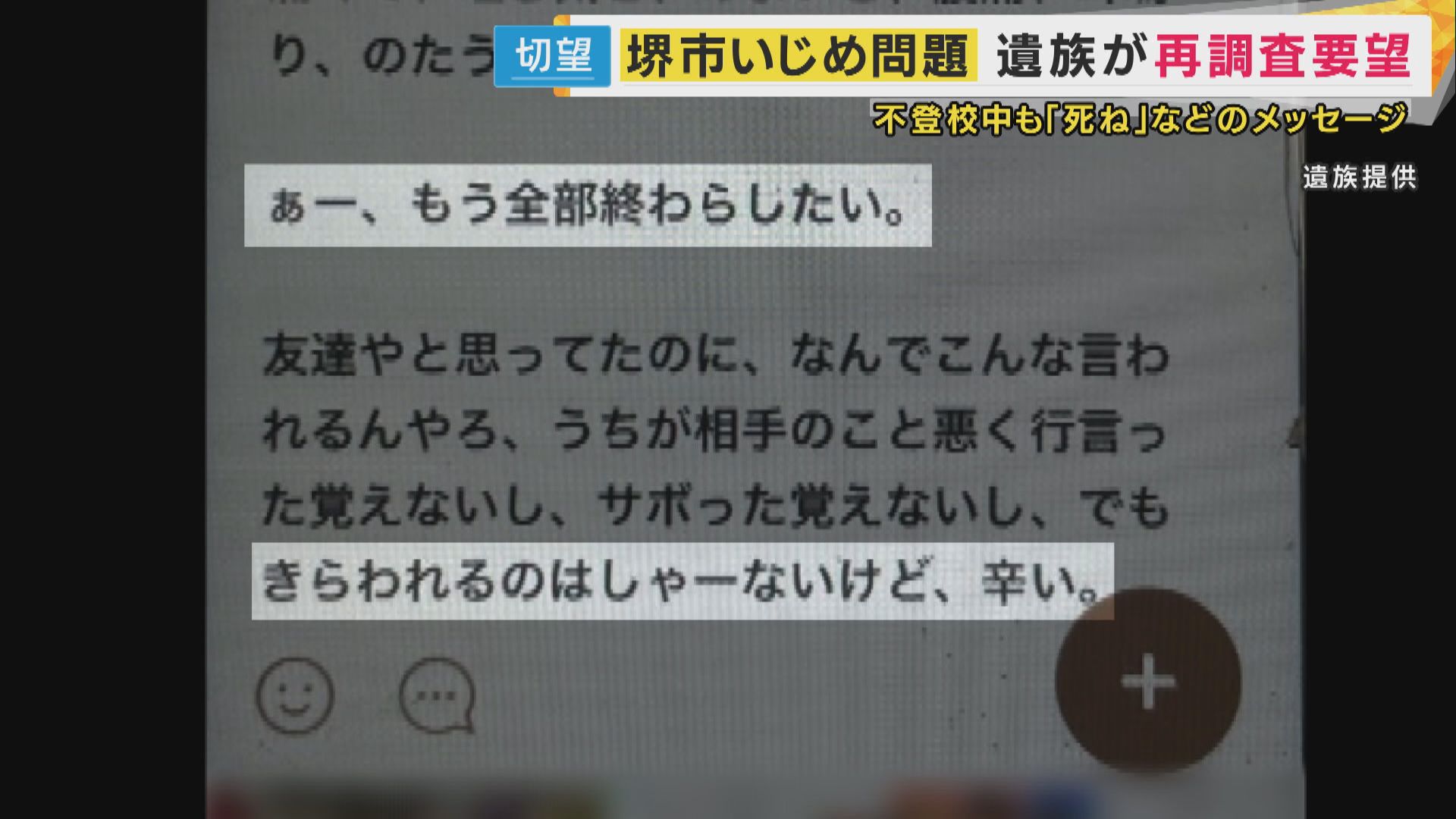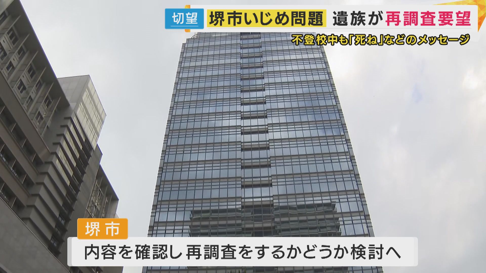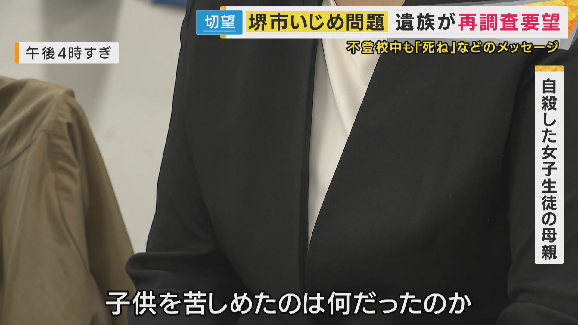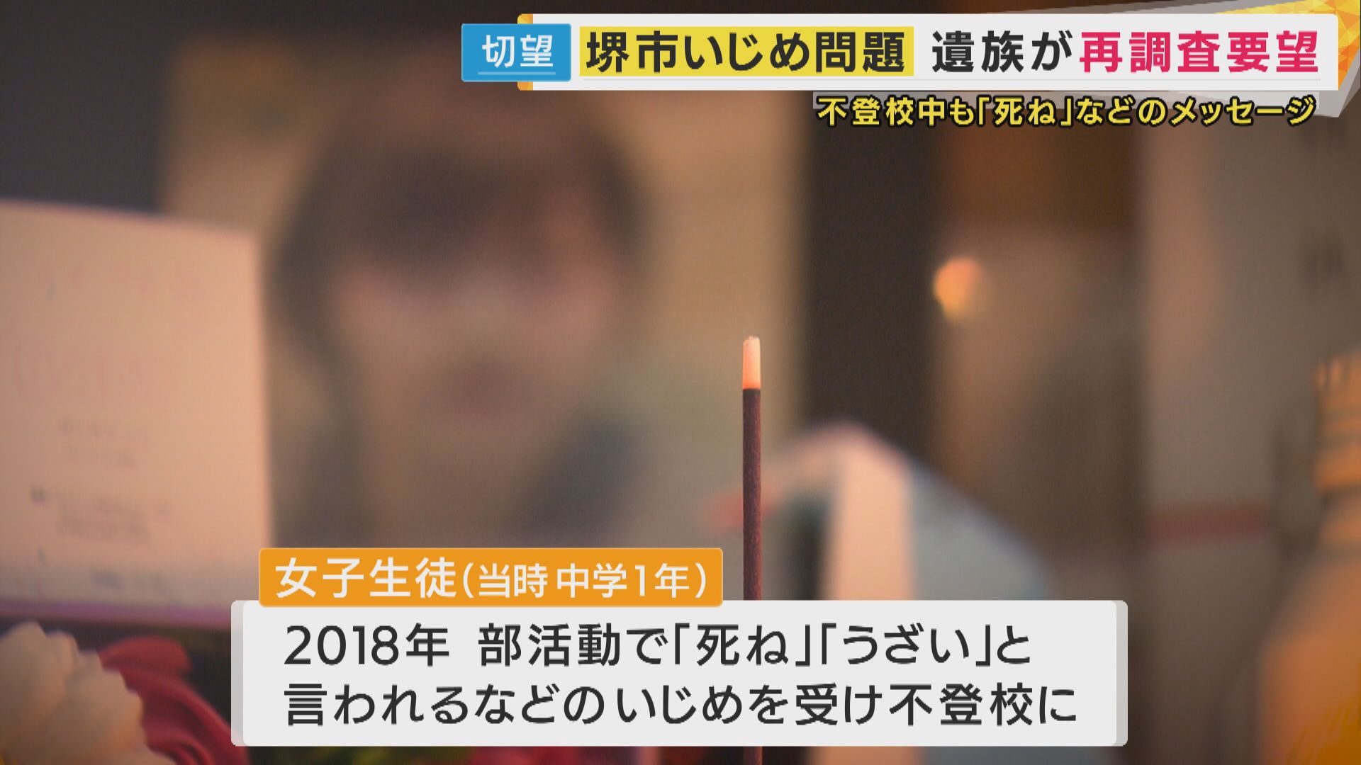 いじめを受けていた堺市の女子中学生が自殺した問題で、遺族は27日、いじめと自殺の因果関係を示す新たな証拠が見つかったなどとして再調査を求める要望書を市に提出しました。
