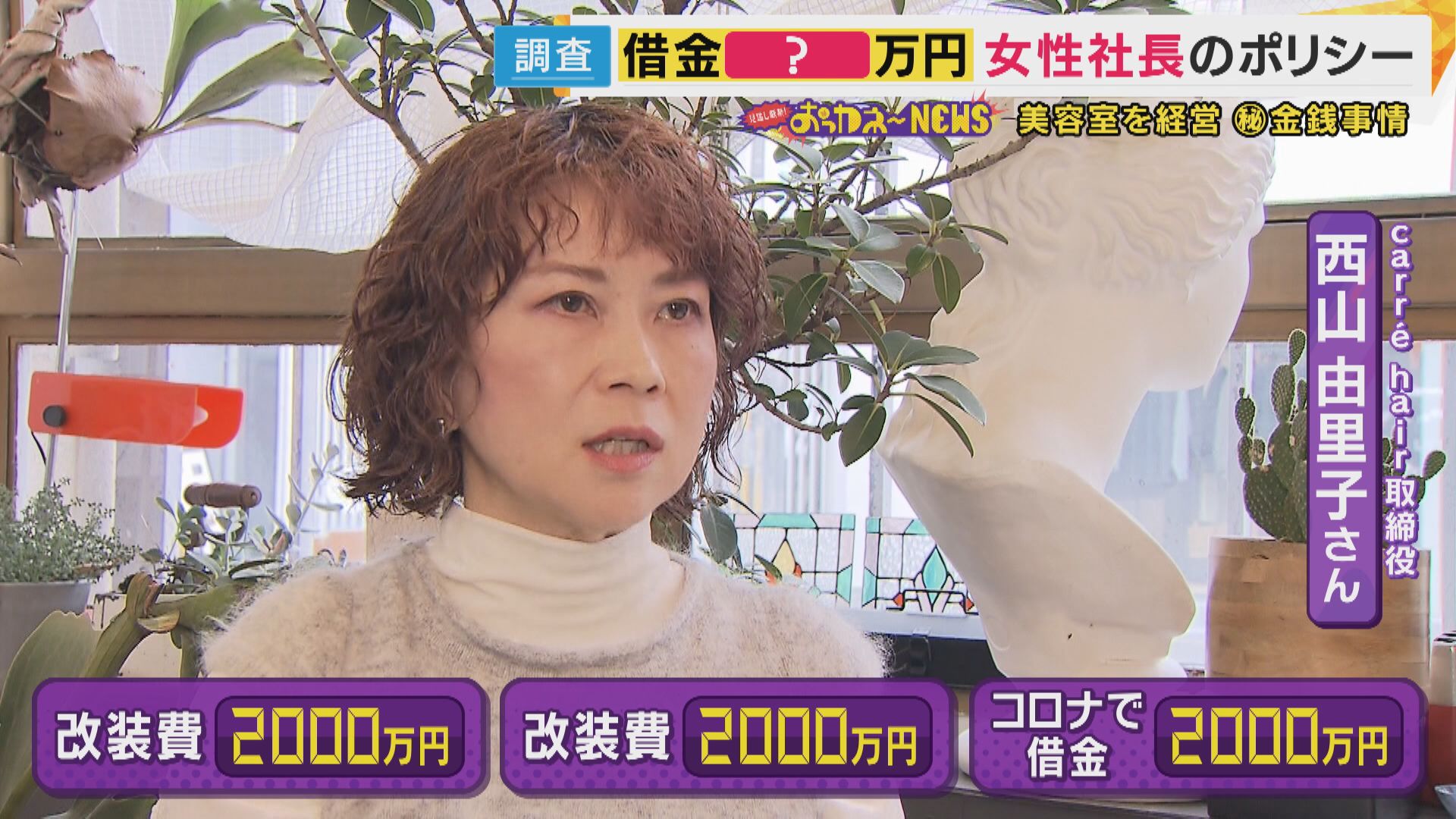 【Carre hair 取締役 西山由里子さん】「スタッフの給料も上げていきたいし、お客さまには、なるべく値上げをしないで、いい薬剤使って、いい技術を提供したい。利益というより、常に(持ち)出していってる感じ」